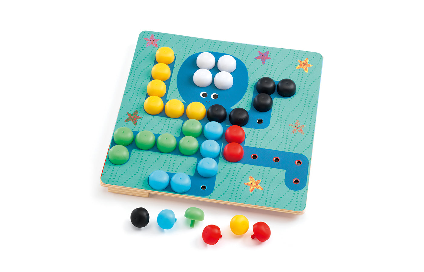 Kinderen kunnen de kleuren sorteren op het bord, de voorbeeldkaarten namaken of gewoon zelf tekeningen maken met deze kleurrijke insteekparels.