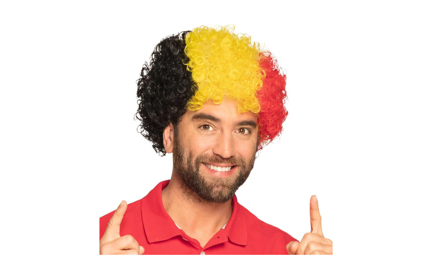 Voeg wat flair toe aan je look met deze grappige pruik in de Belgische kleuren. Het is het perfecte accessoire om de Rode Duivels aan te moedigen of om een nationale feestdag te vieren.