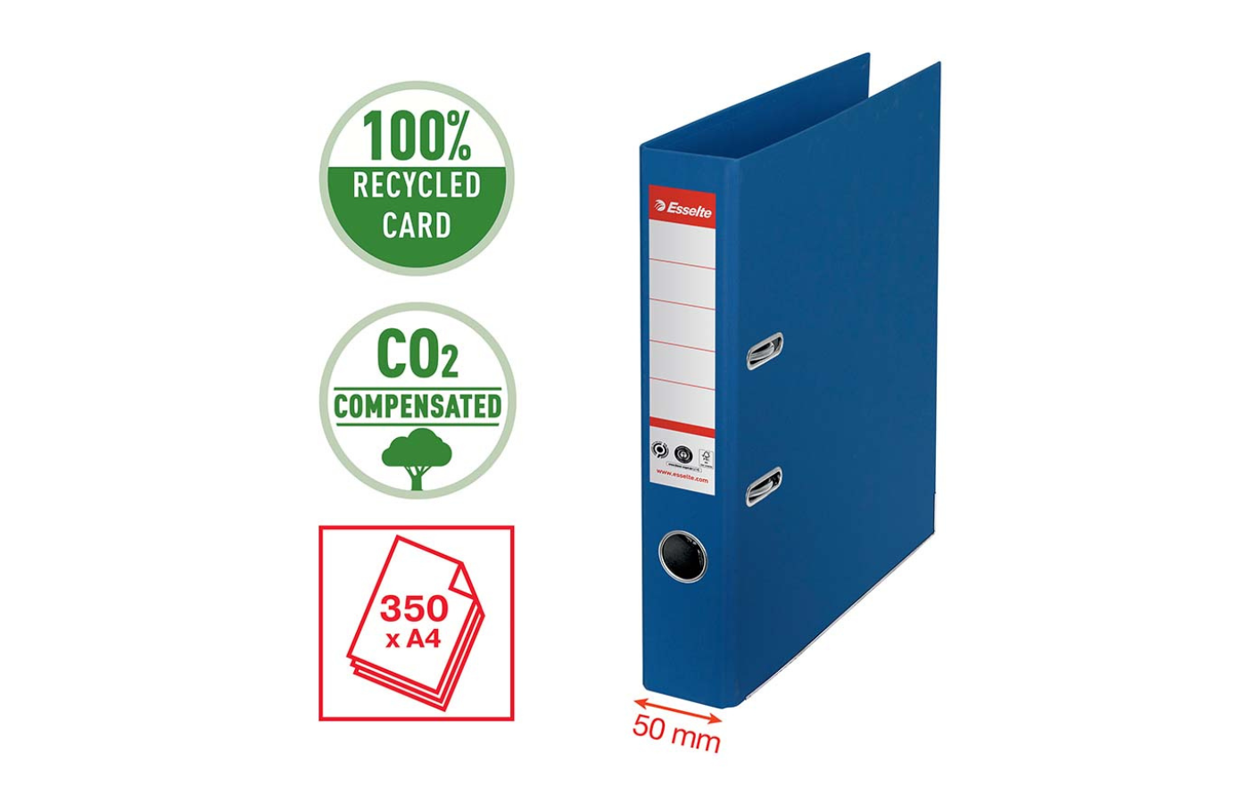 1 ringmap met hefboom - A4 - 50 mm - karton (kleur naar keuze: blauw, rood, geel, groen, zwart of wit)