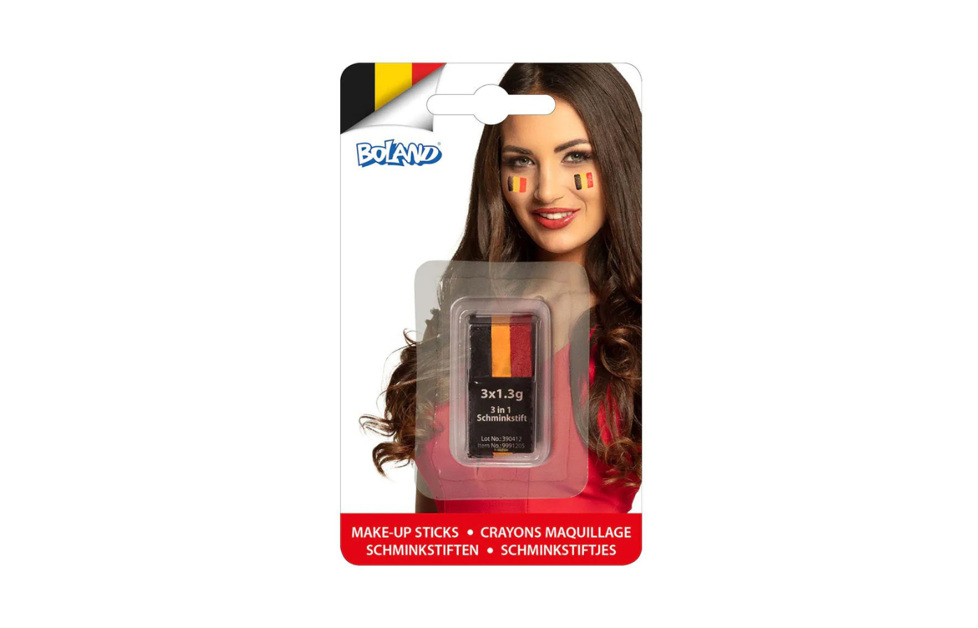 Laat je gezicht stralen in Belgische kleuren met deze schminkstift. Met zijn handige formaat kun je hem overal mee naartoe nemen en je gezicht in een handomdraai klaarmaken om de Rode Duivels aan te moedigen of een nationale feestdag te vieren.