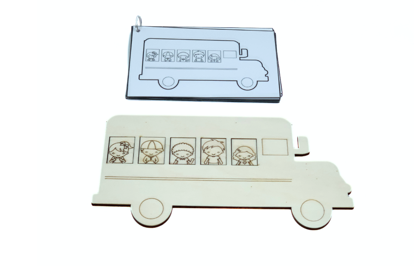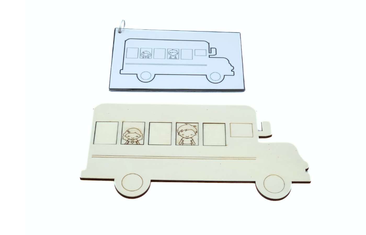 Fijnmotorisch spel met betrekking op ruimtelijke oriëntatie. Oefen de ruimtelijke begrippen door deze schattige kinderen de juiste plaats op de schoolbus te geven.