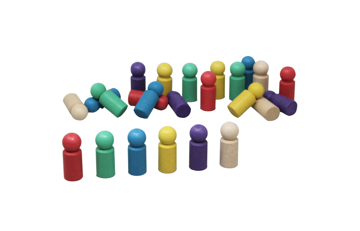 Deze set bevat 24 grote spelpionnen in de kleuren rood, groen, blauw, geel, paars en wit. Ze zijn geschikt voor spellen, groeps- en projectwerk of om bestaande sets aan te vullen of uit te breiden. Daarnaast kunnen ze ook ingezet worden bij rekenen, tellen, sorteren, wegen of gebruikt worden voor rollenspellen.