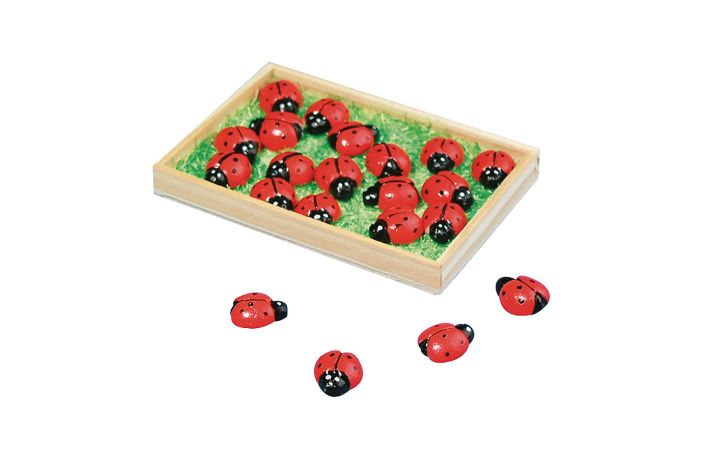 Een houten doosje met 18 schattige houten lieveheersbeestjes. De achterzijde is zelfklevend, trek eenvoudig de folie eraf en kleef ze op de gewenste plek. Te gebruiken als decoratie of om mee te knutselen.