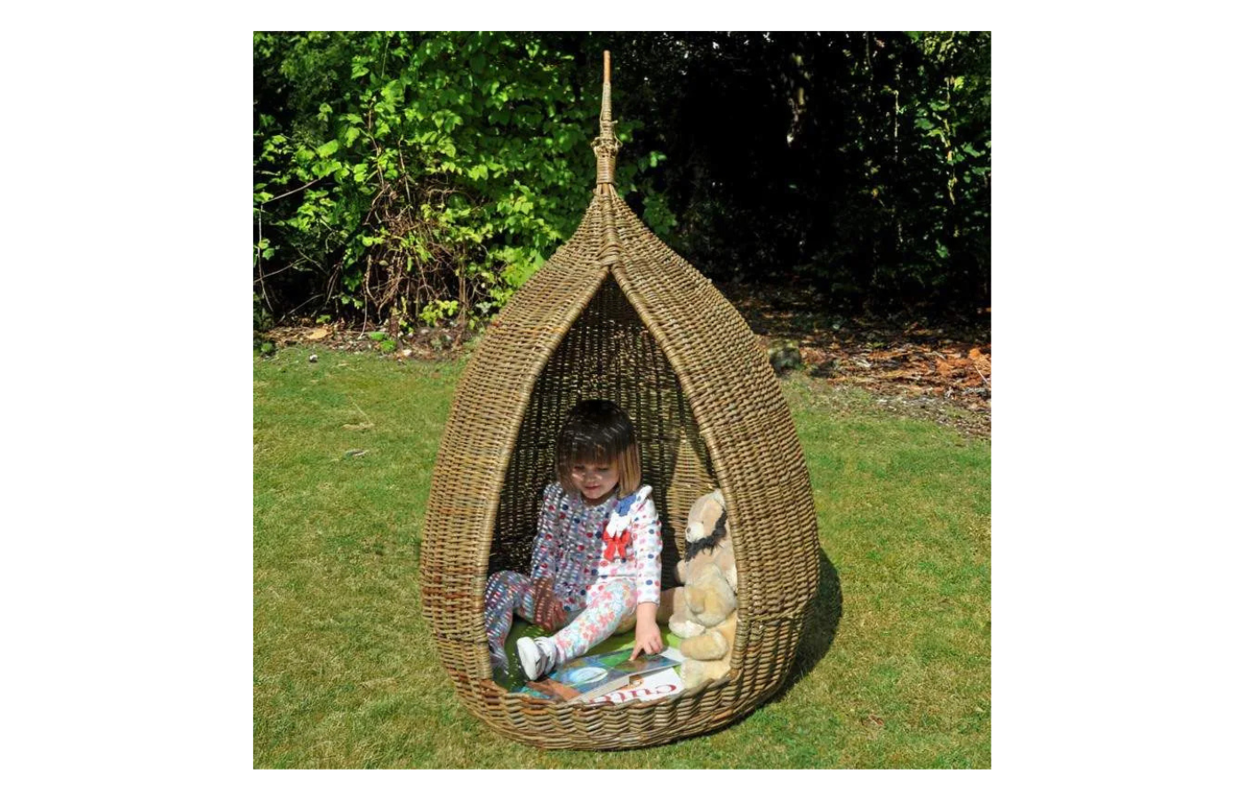 De hut is gemaakt van lichtgewicht wilg en daardoor eenvoudig te verplaatsen en aan te passen aan elke ruimte.