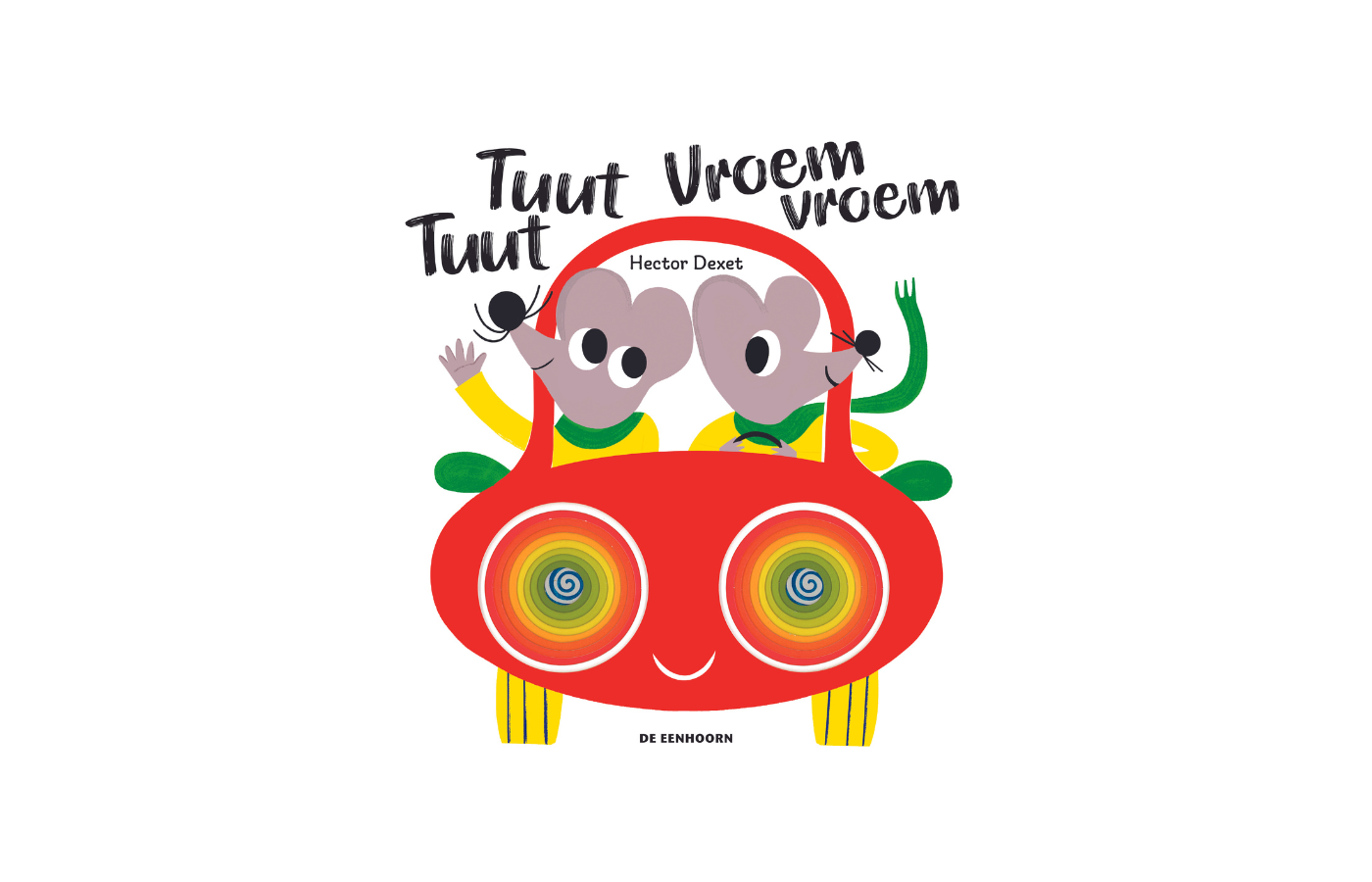 Een vrolijk kartonboek over voertuigen, met regenboogkleurige gaatjes.