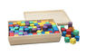 150 houten telblokjes in 6 verschillende kleuren (afm. 2 x 2 x 2 cm)