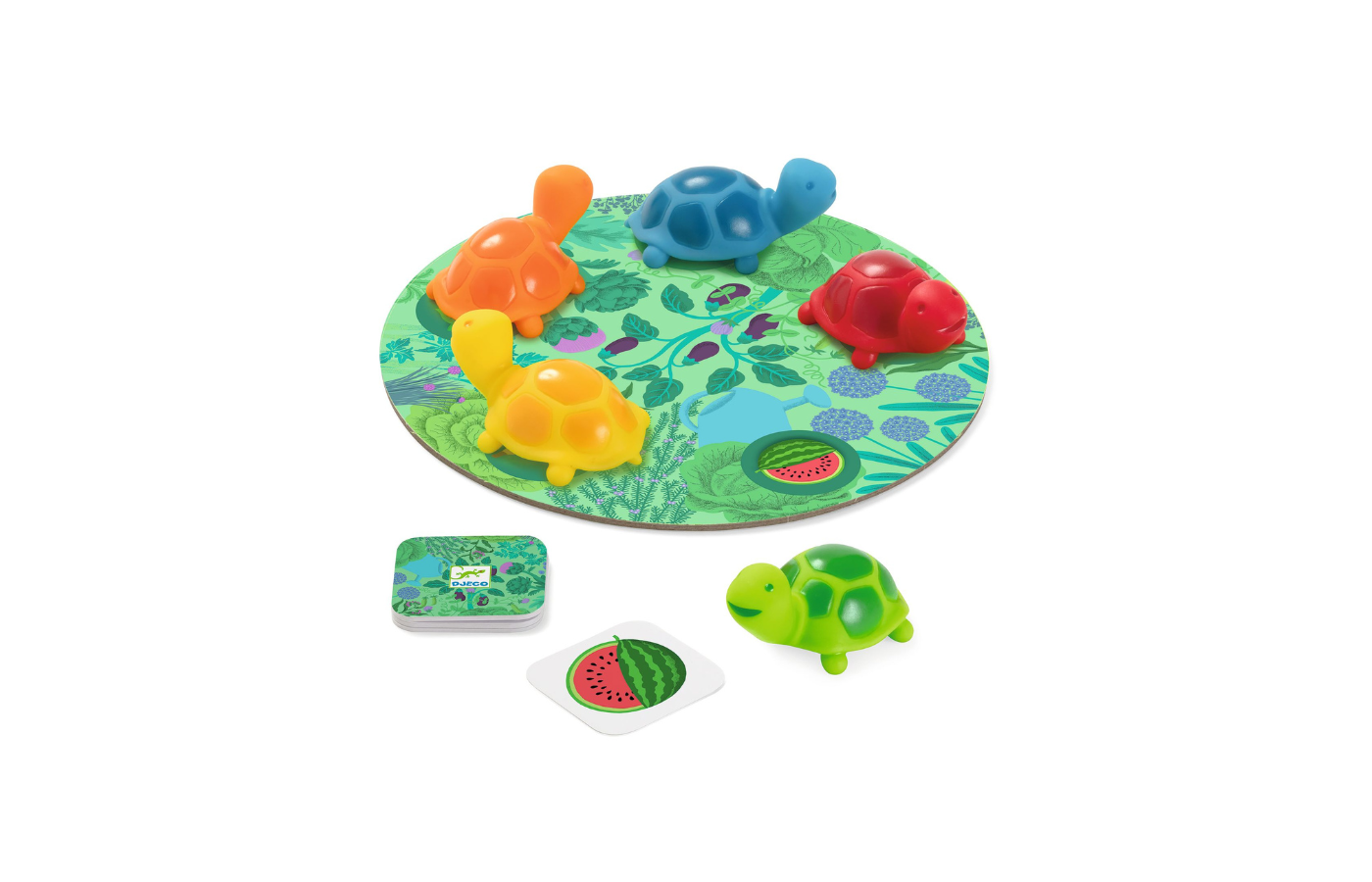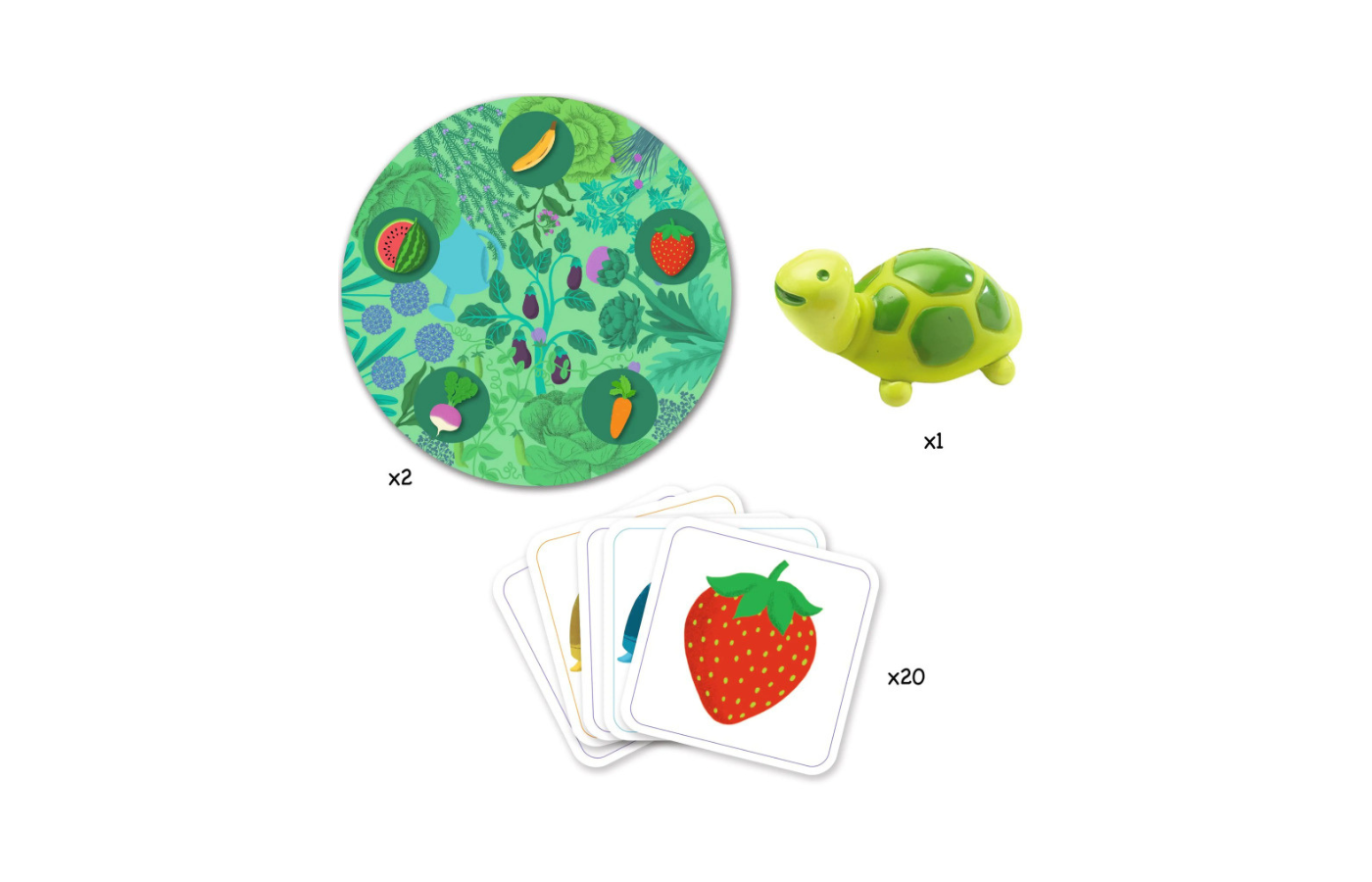 GEHEUGENSPEL - De grappige schildpadden zijn dol op lekker eten. Ze spelen in de tuin waar ze heerlijke stukjes groenten en fruit hebben verstopt als tussendoortje.
