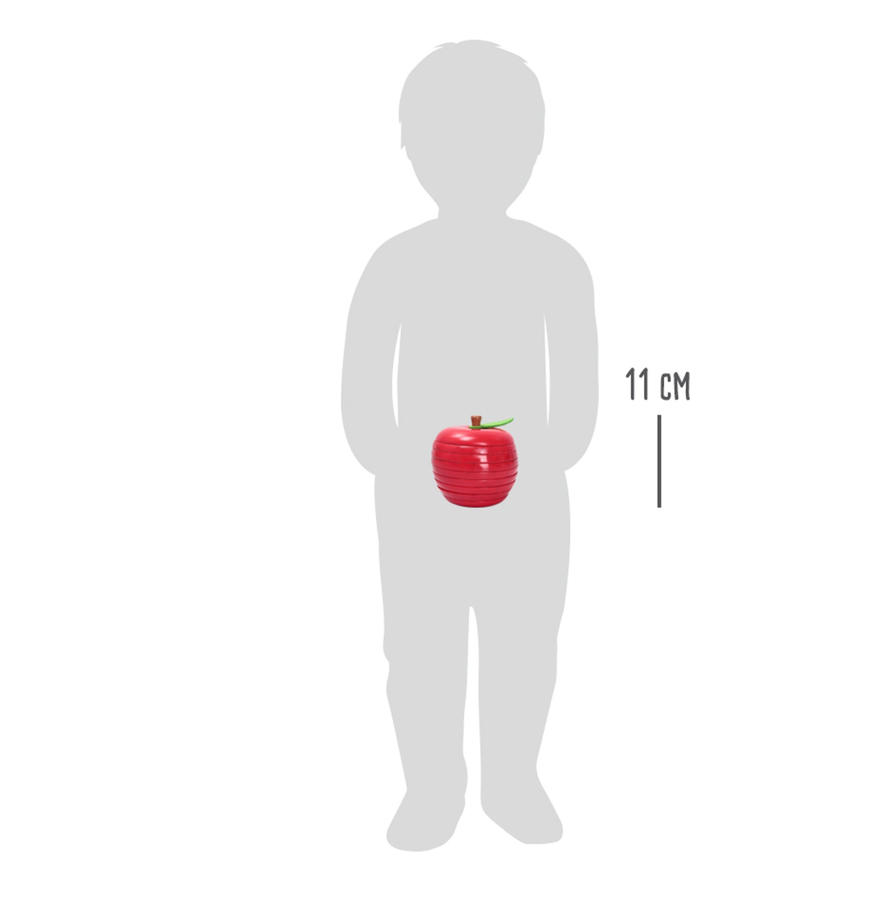 Logica en vaardigheid helpen deze vrolijke rupsen door de appel. Omdat de rupsen verschillende lengtes hebben en elke appelschijf één opening minder heeft dan de vorige, is er maar één weg om er helemaal door te gaan! Welke rups vindt als eerste zijn weg door de appel? De appelschijfjes en rupsen zijn gemaakt van massief hout, het blad is mooi afgewerkt met stof. De afmeting van de volledige appel is 12 x 11 x 11 cm.