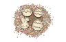 Vulvormen of speeltrays in het thema Pasen (twee eieren, een paashaas en een kuiken uit een ei). Perfect te vullen met droge materialen zoals speelrijst, kikkererwten, fijn zand,... In een schattig formaat.