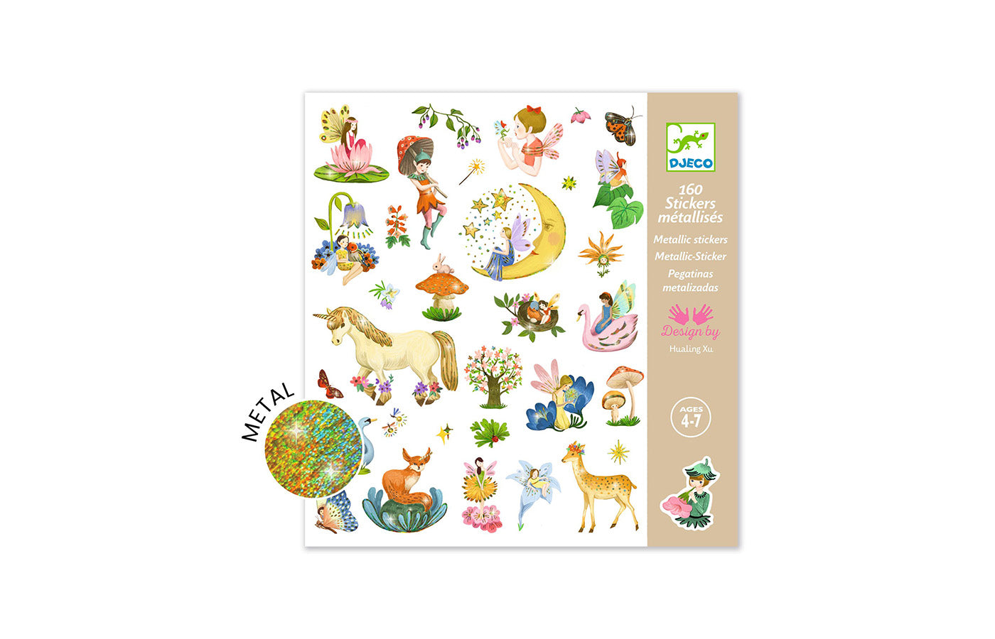160 metallic fantasie stickers (4 vellen - 2 x 2) (afm. verpakking 22 x 23 cm)