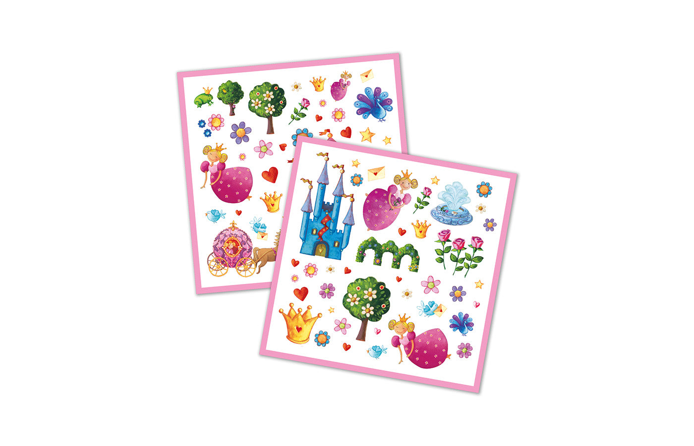 Set van 4 vellen met telkens 40 stickers in het thema prinsessen. Fleur je tekening, werkje op met deze gebruiksvriendelijke stickers. Stickers zijn 's werelds gemakkelijkste decoraties voor een betaalbare prijs.