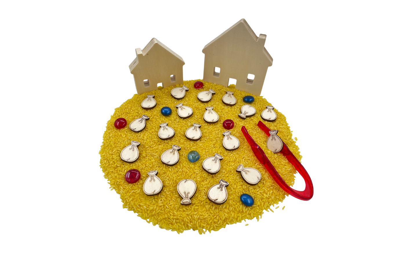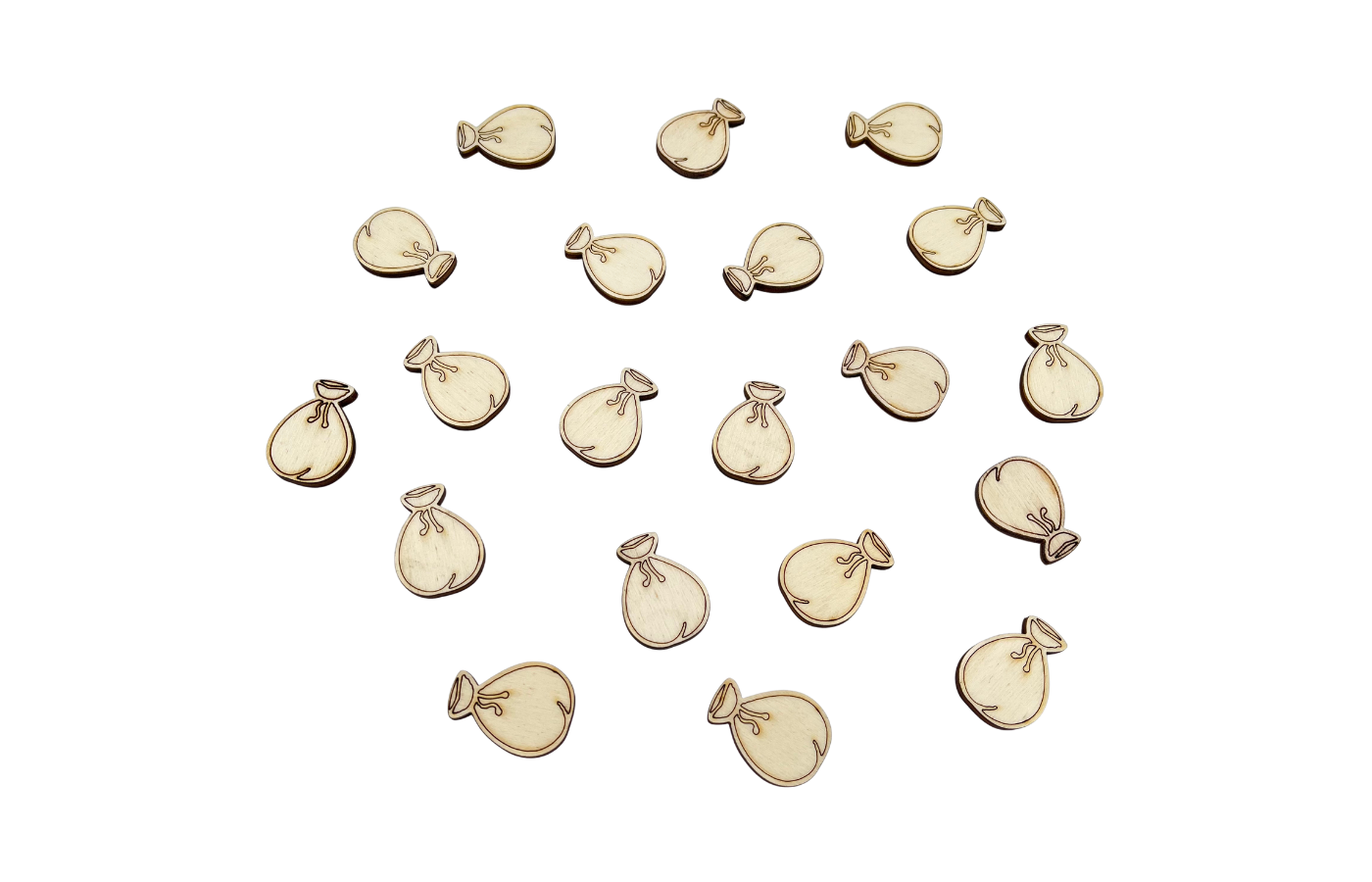 set van 20 strooihoutjes - speelgoedzak (afm. 3,5 x 2,5 x 0,4 cm)