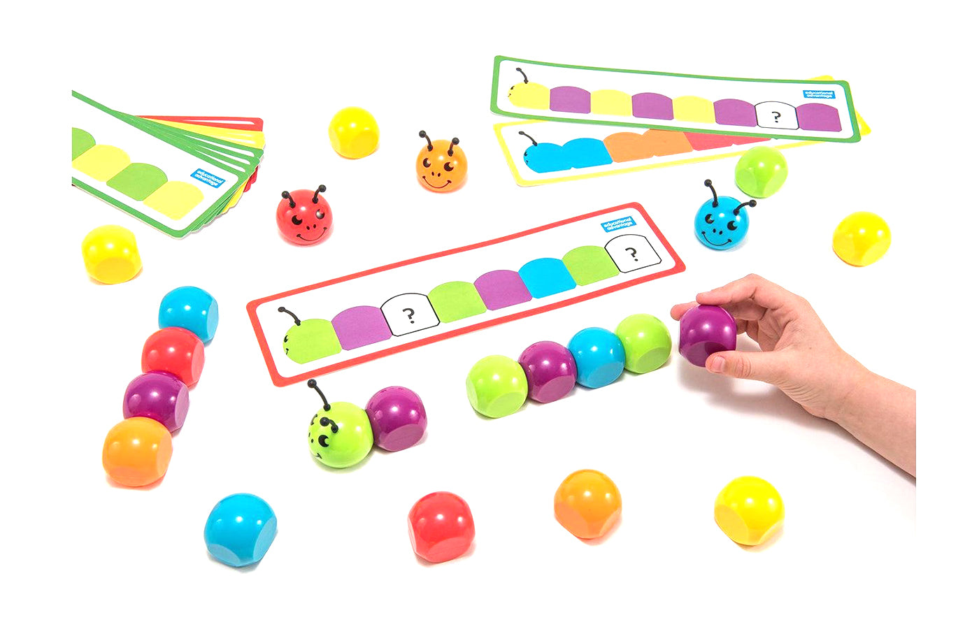 Game related to spatial orientation and fine motor skills. The children complete their caterpillar based on the different task cards. All parts are magnetic and fit together. A color code has been added to the assignment cards to indicate the level of difficulty. Includes 6 cups, 42 bodies and task cards.