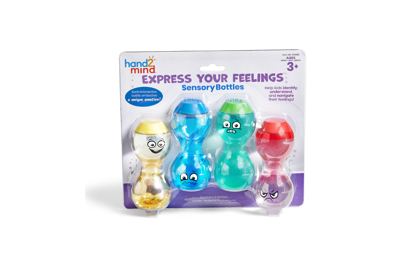Whether they're happy, sad, scared or angry, the simple expressions, colours and movements in each of the 4 adorable sensory bottles in this set help children identify and express their feelings and emotions.