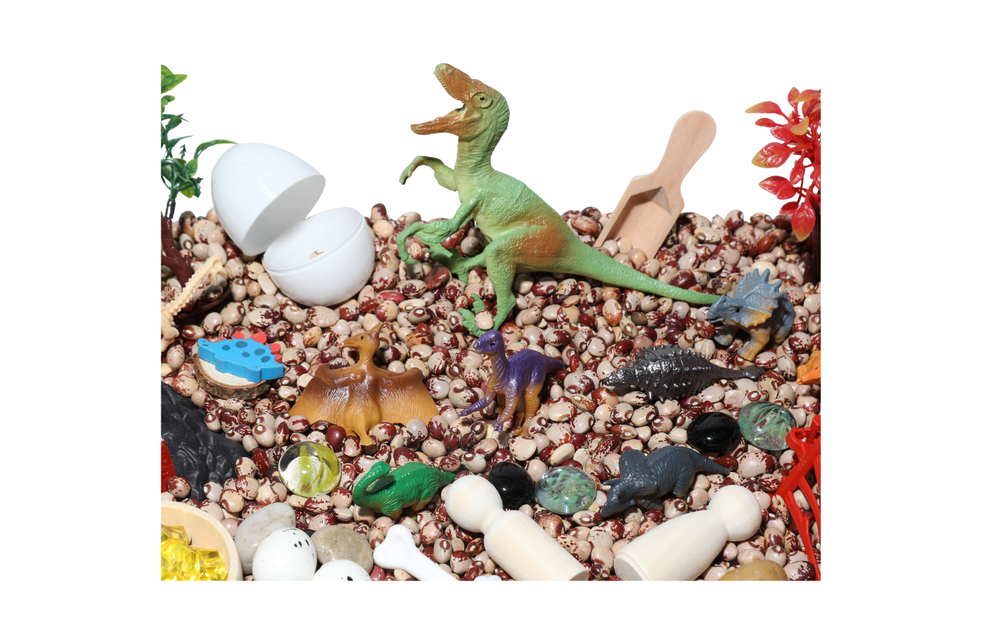Sensory Play Tray - Dinosaurs - Beans