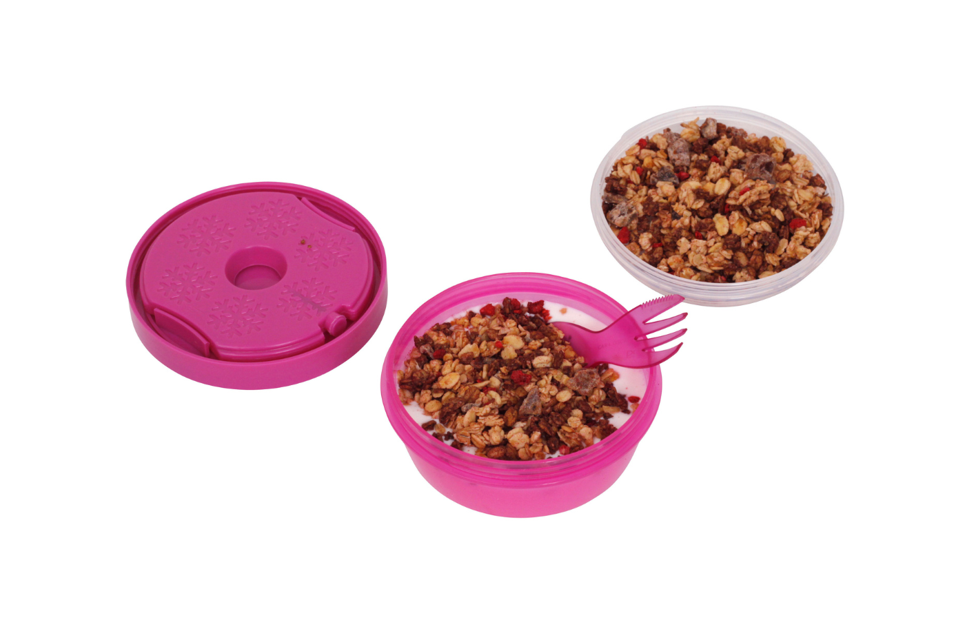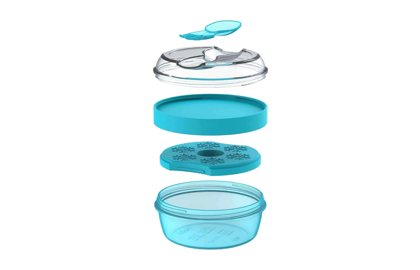 Looking for a durable and stylish snack box with a cooling disc that your child can take anywhere? This snack box with a cooling disc and fork keeps your snack cool for up to 2 hours. For optimal results, place the disc in the freezer for 4 hours.