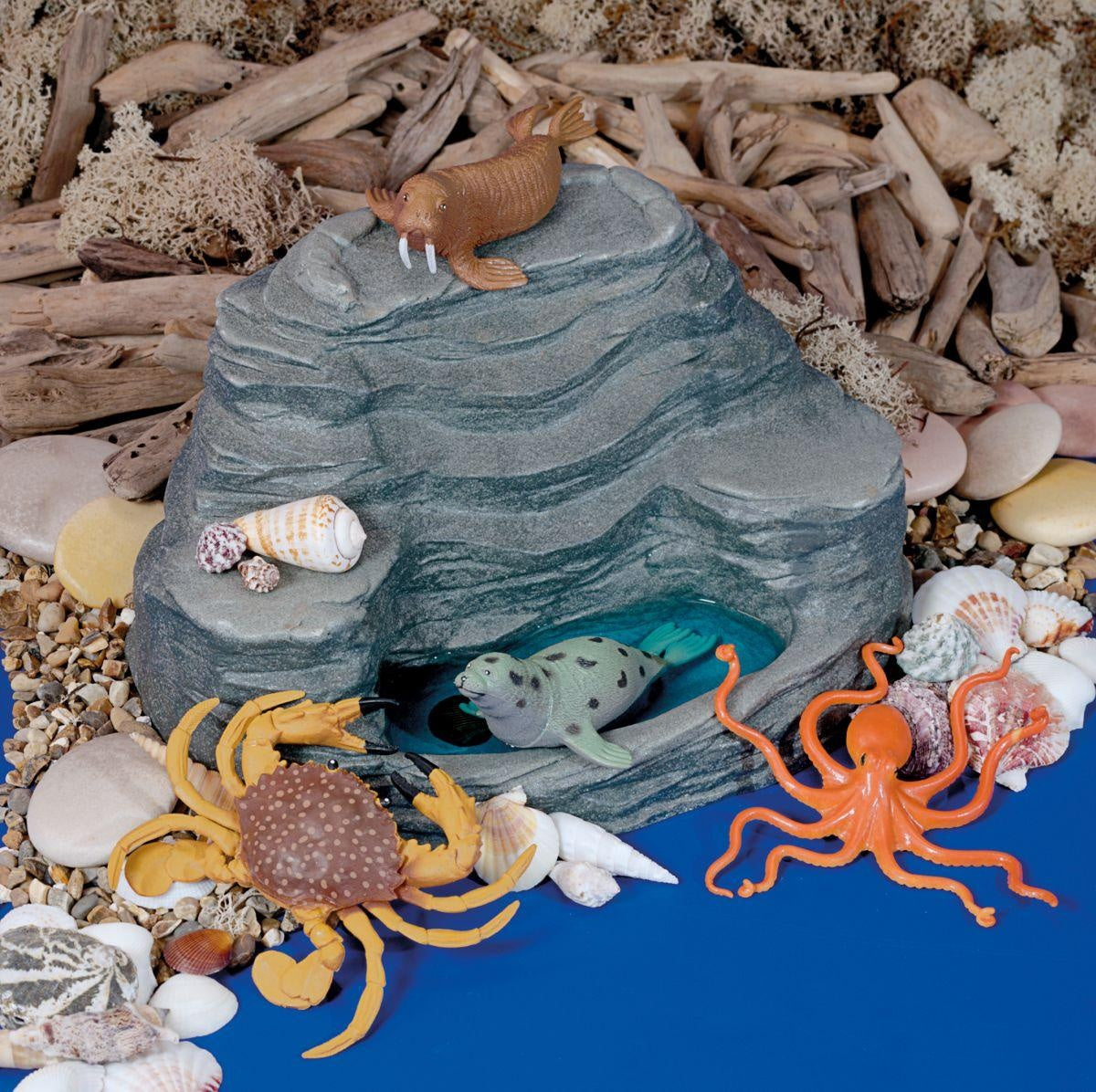 This fun play waterfall offers many possibilities. Because it is made of a resin/stone mix, it can be used both indoors and outdoors. It can also withstand water, sand and mud. The kids will love exploring the waterfall and making up stories about what might be going on. Add aquatic animals and create a unique play environment.