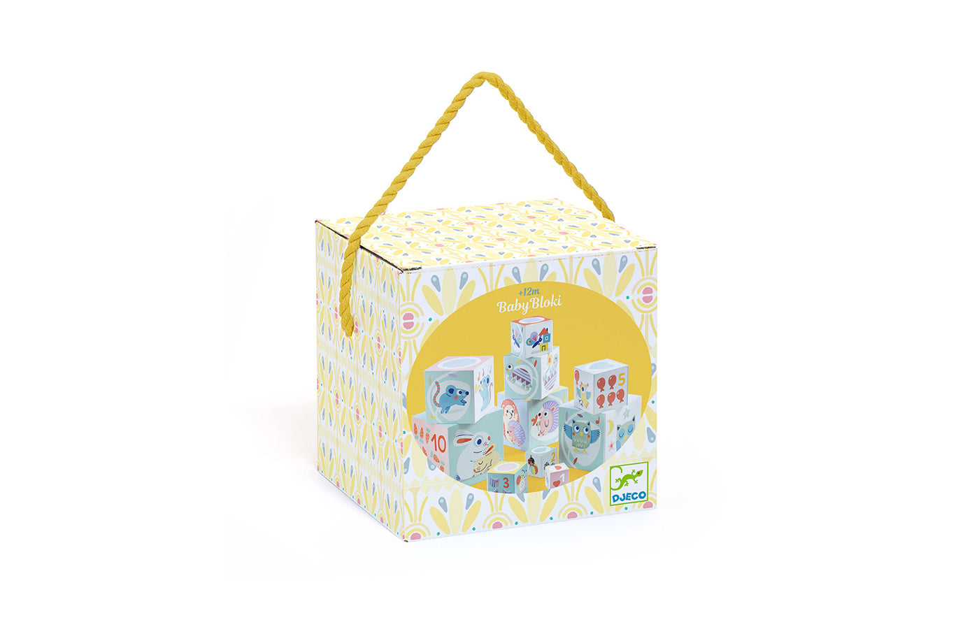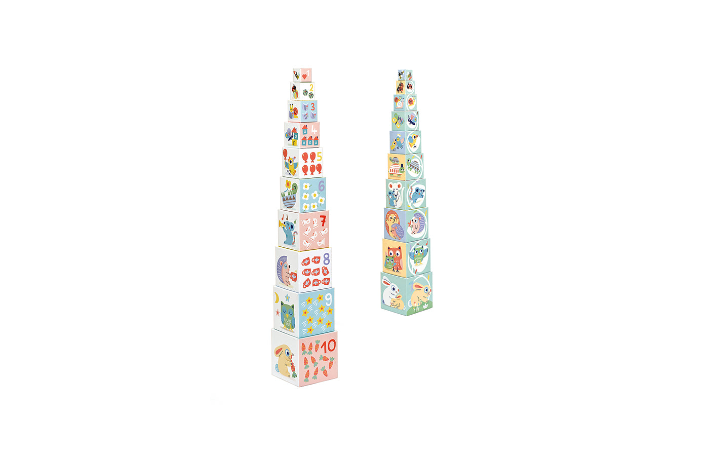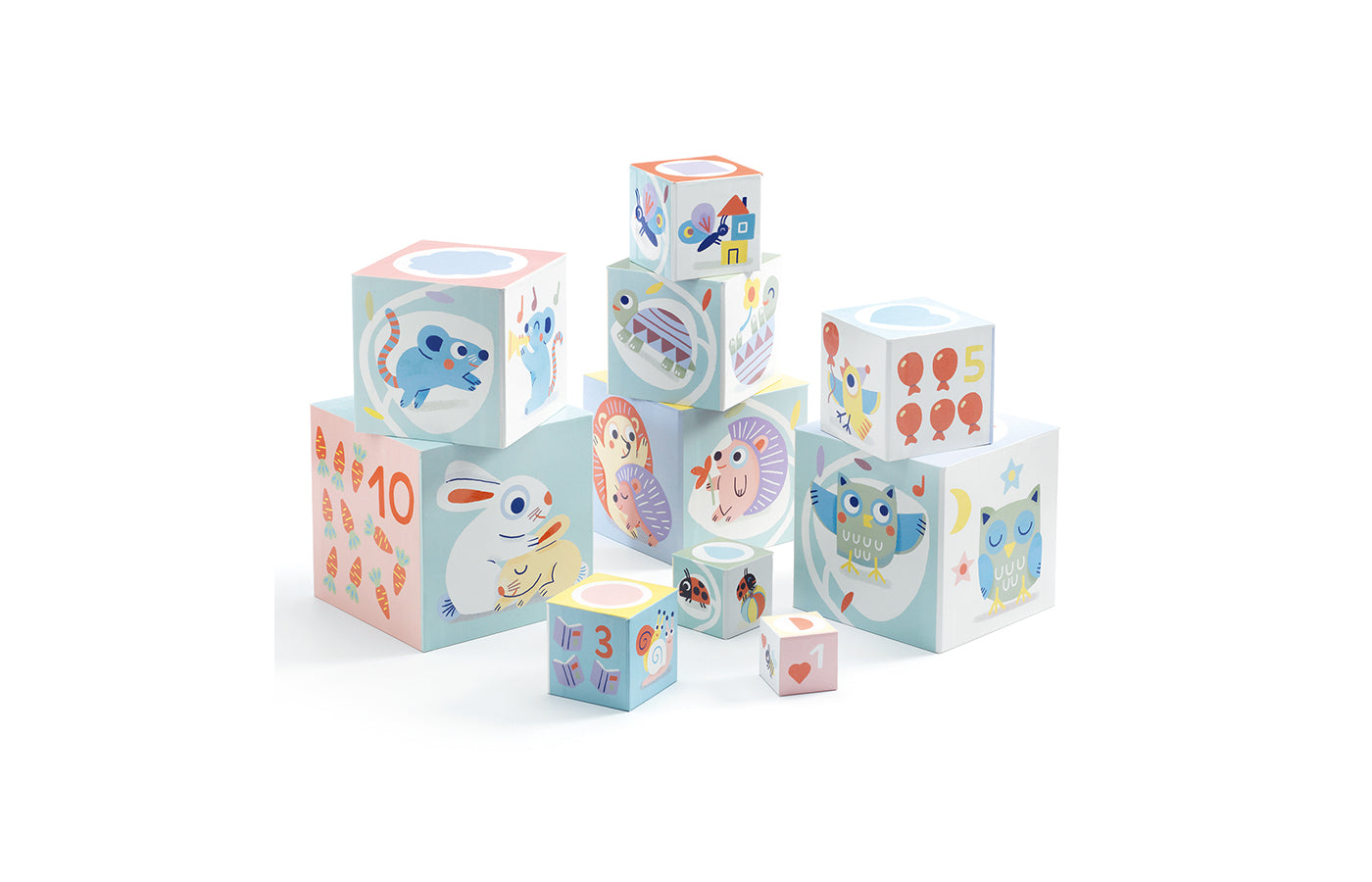 10 stacking blocks (dimensions largest block 15 x 15 x 15 cm)