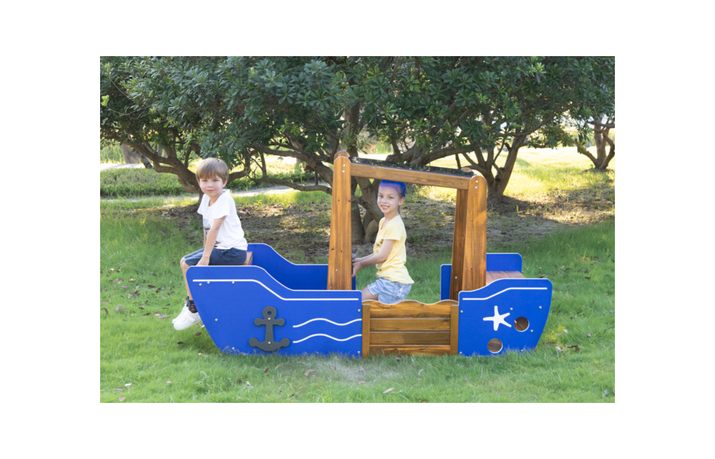 Alarm! Teamwork required! This beautiful fire engine, made of FSC-certified pine wood, has room for 6 children. The bell, water pump, fire hose and water bowl are included.