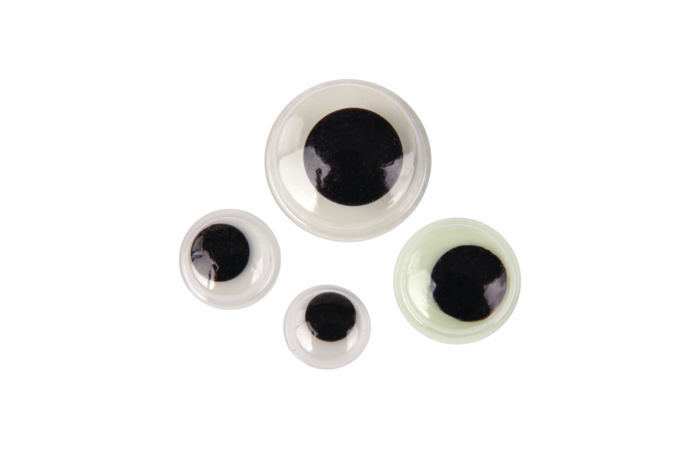 Googly eyes with movable pupils and adhesive backing that you can use to bring homemade dolls, animals and figures to life. They bond quickly and easily to various materials.