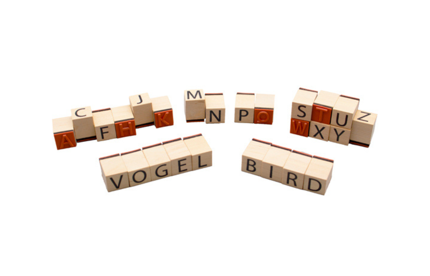 26 wooden square letter stamps (size 3 x 2 x 2 cm)