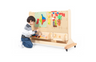 Movable construction wall with themed packs and 8-piece tool set. Constructions can be made on both sides of the wall. Let your creativity run wild or make fun drawings based on the example cards.