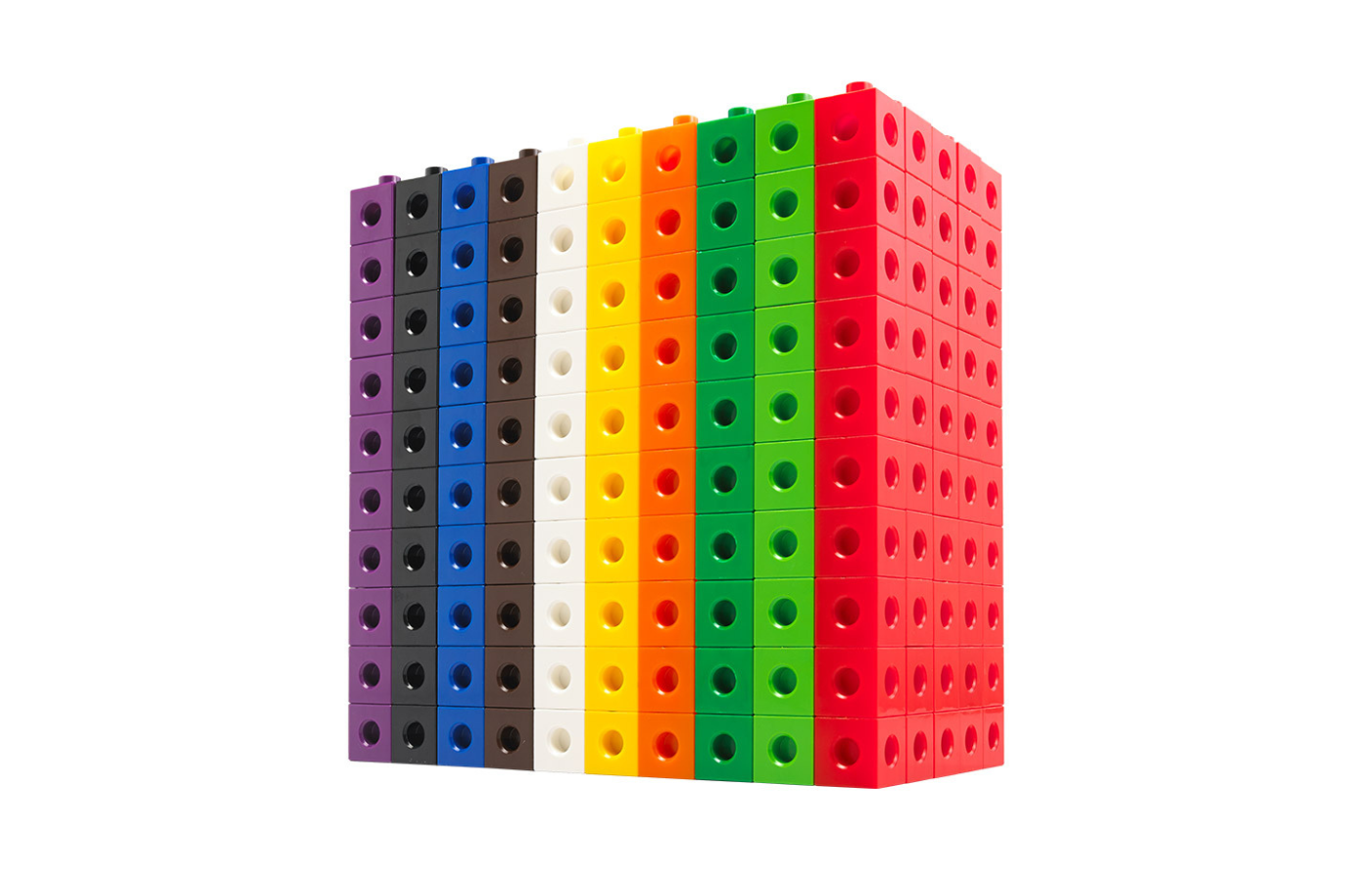 Linking cubes can be used for calculation and pattern or sorting activities. Each cube has round recesses and can be connected from all sides.