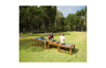 This mud table consists of a combination of three mud tables and results in a play street that invites you to shovel, pour and mud. The first mud table has two sinks with closable water drains and an extra plastic container for transport. The second water table has those 3 bins and can simulate a water course. The last mud table serves as a receptacle for the watercourse. The high-quality mud table is produced from sustainable pine wood. Delivered partially assembled, including extensive mounting accessories and easy-to-understand instructions.