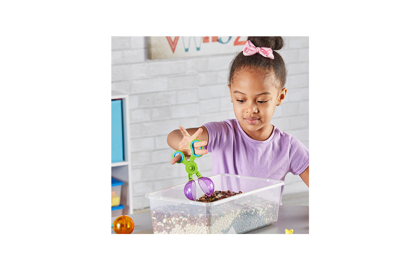 Transparent scoopers are very suitable for developing fine motor skills. The holes in the scoopers allow the water to drain during use in a water table.
