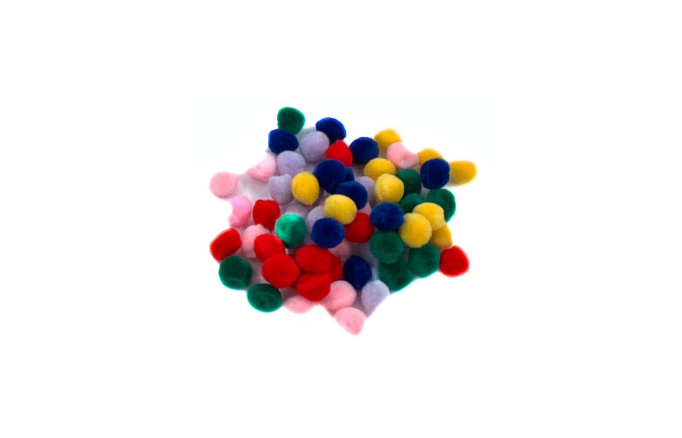 60 pompoms (10 x yellow, 10 x red, 10 x green, 10 x blue, 10 x purple and 10 x rose)