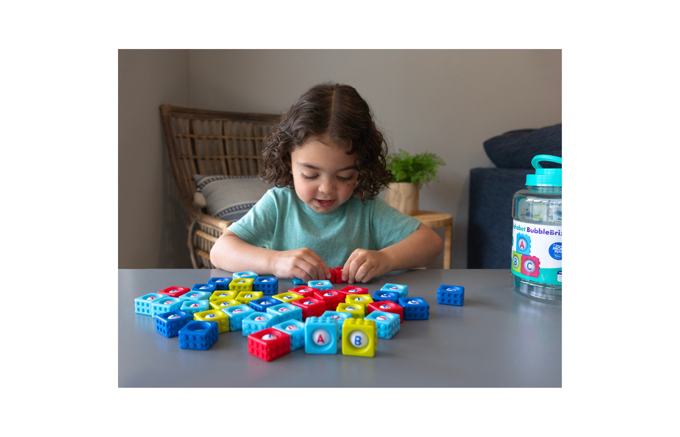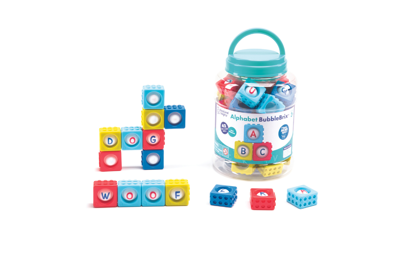 This set helps young children learn letter recognition, beginning and ending sounds. The blocks are easy for little hands to attach. Press a stone, feel and hear it pop and practice its name and sound.