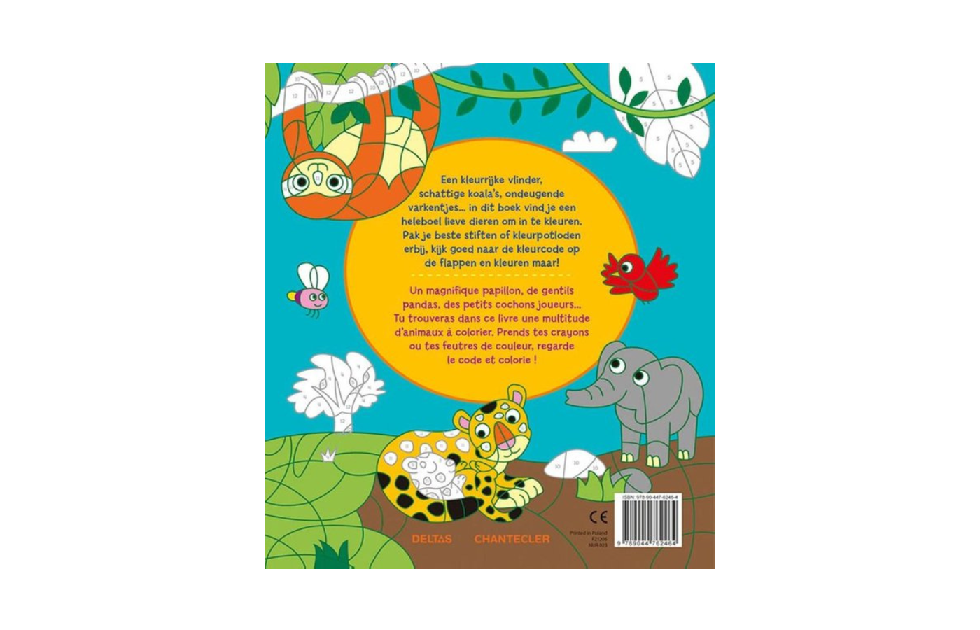A colorful butterfly, cute koalas, mischievous pigs... in this book you will find a lot of sweet animals to color. Grab your best markers or colored pencils, look carefully at the color code on the flaps and color away!