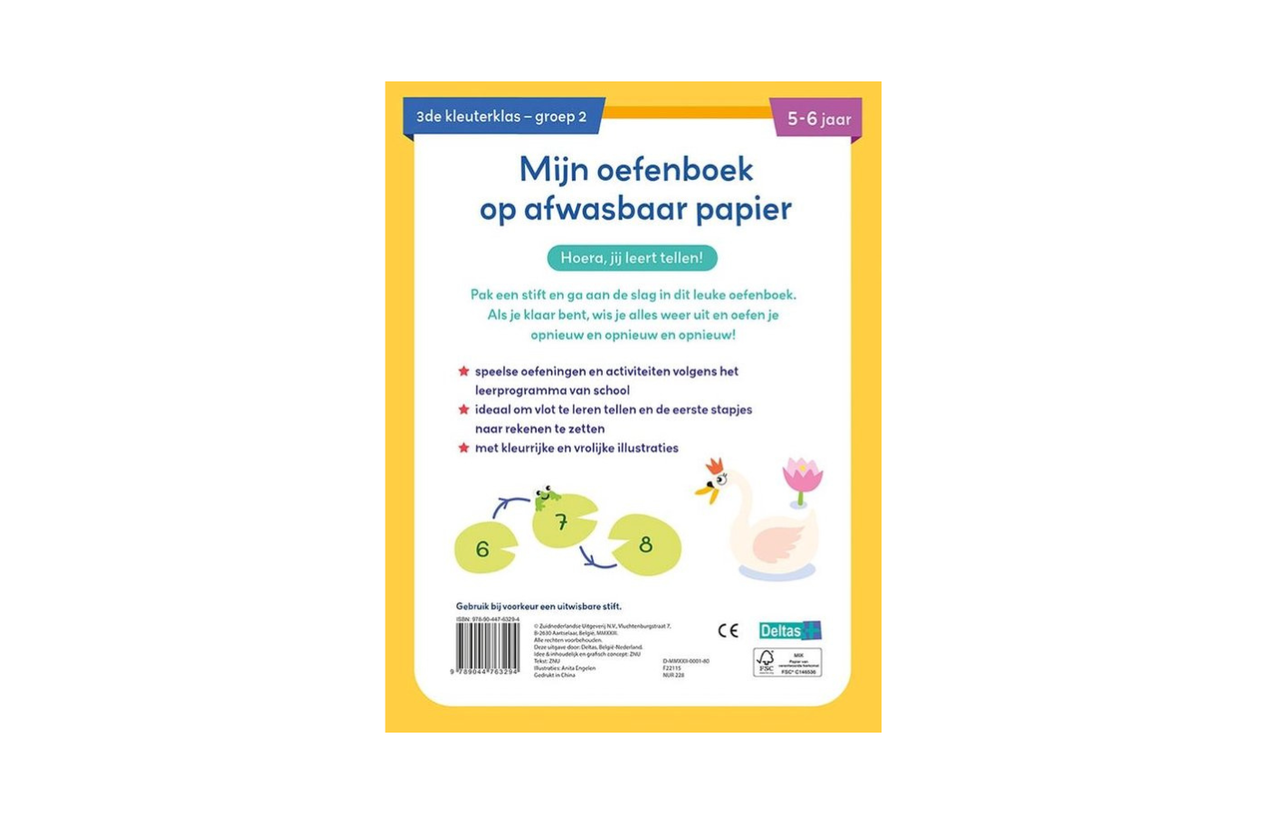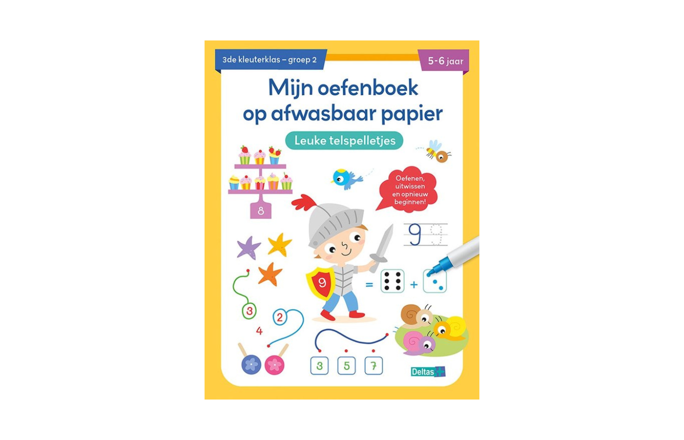 This fun exercise book on washable paper is reusable and therefore ideal for children who are taking their first steps in arithmetic. Let your child solve the exercises with a marker, erase them and start again. Endless practice fun guaranteed!