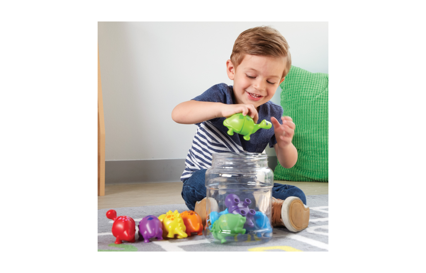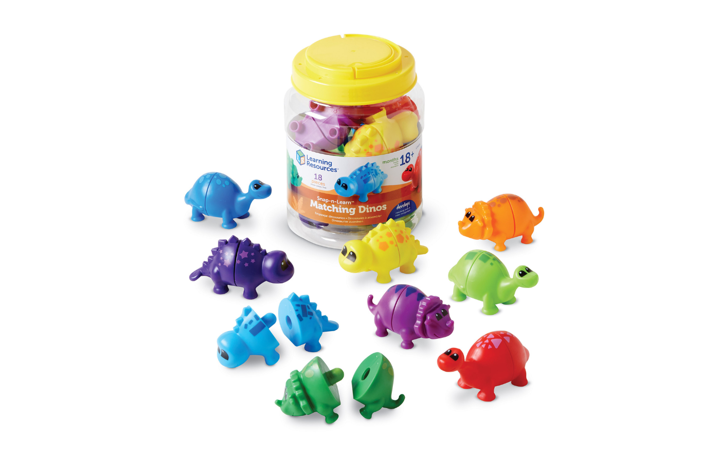 These colorful dinosaurs mix and match to provide hours of fun for young children while developing their fine motor skills.