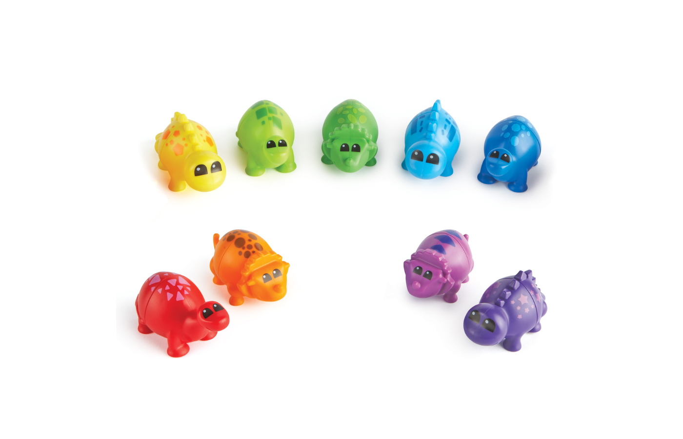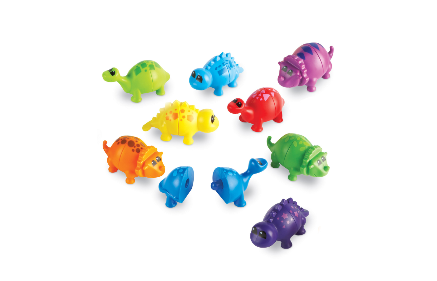 This set contains 9 complete 2-piece dinosaurs in different colors.