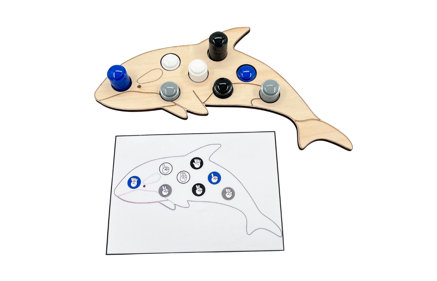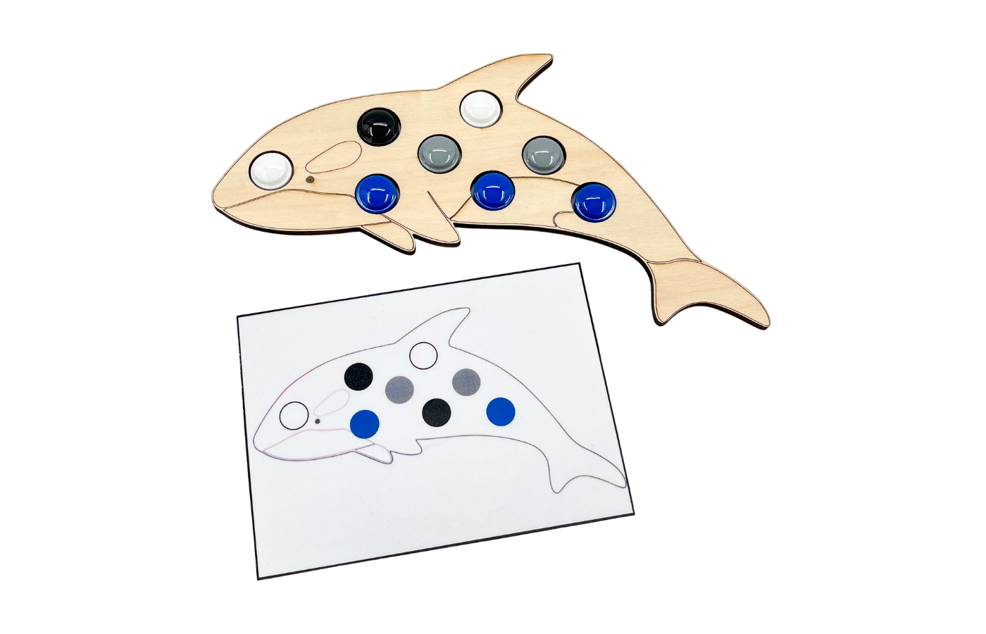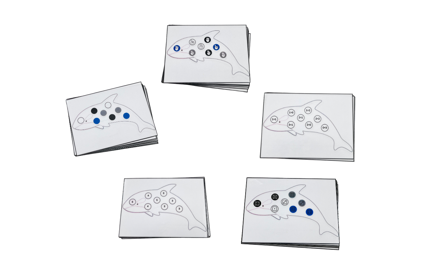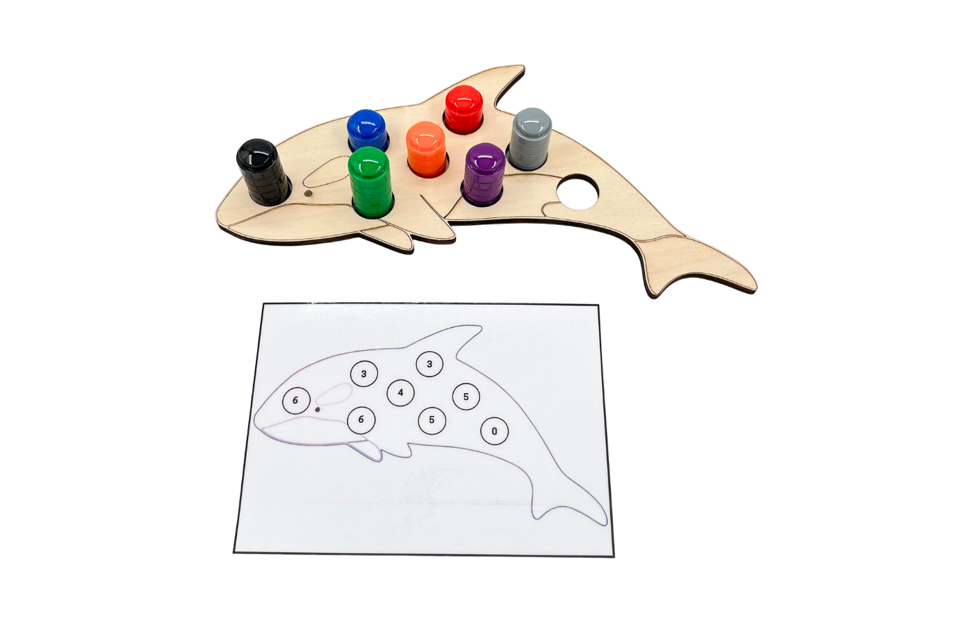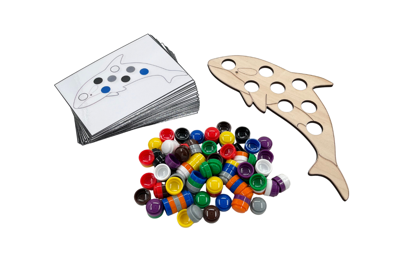 This game focuses on spatial orientation, math, and fine motor skills. Children arrange the stacking cups on the autumn leaf using task cards. Includes 100 colored stacking cups (black, white, blue, yellow, gray, brown, green, orange, red, and purple). Differentiation is integrated into the 34 task cards (various number images). (Print and laminate yourself.)