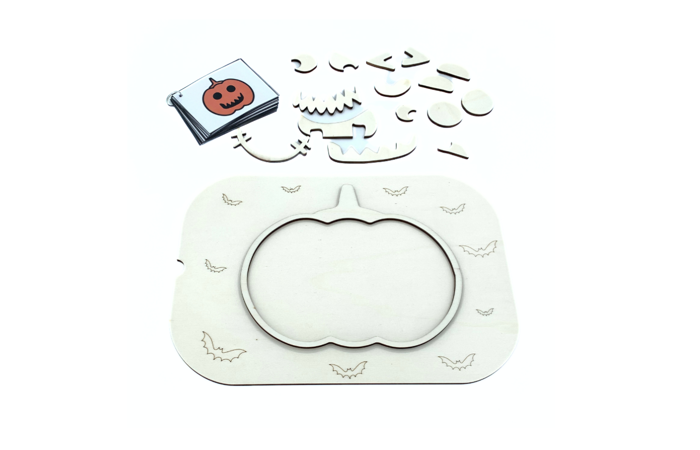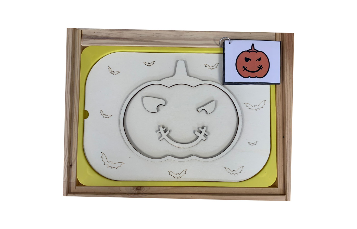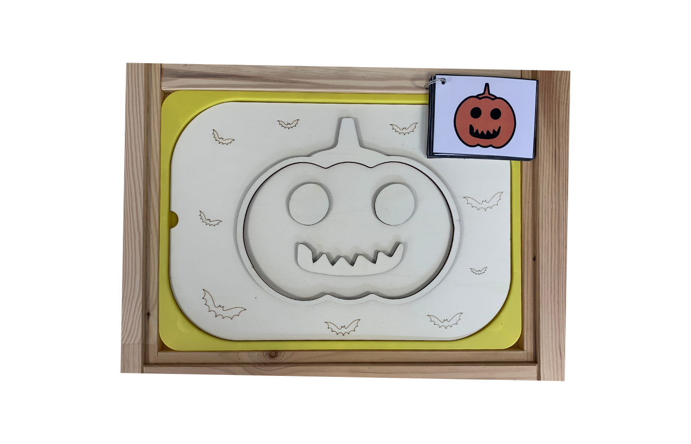 Multifunctional sensory theme lid (pumpkin) for use on the well-known Trofast containers from Ikea. Place the wooden game figures in the right place in the pumpkin and make different creepy faces or fill the pumpkin (3D) with colored rice. This can also be done on the basis of assignment cards.