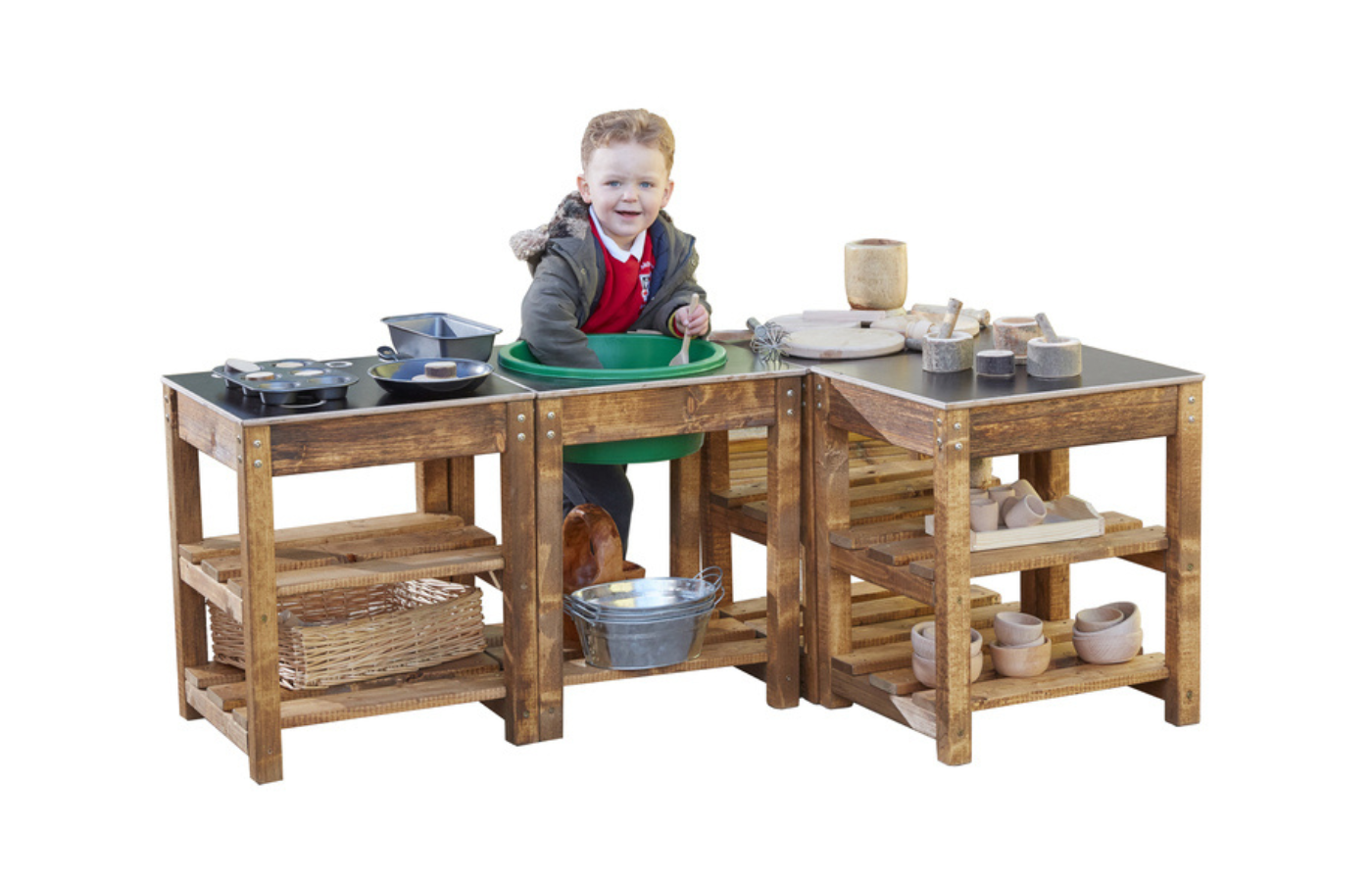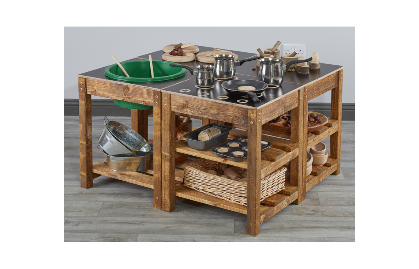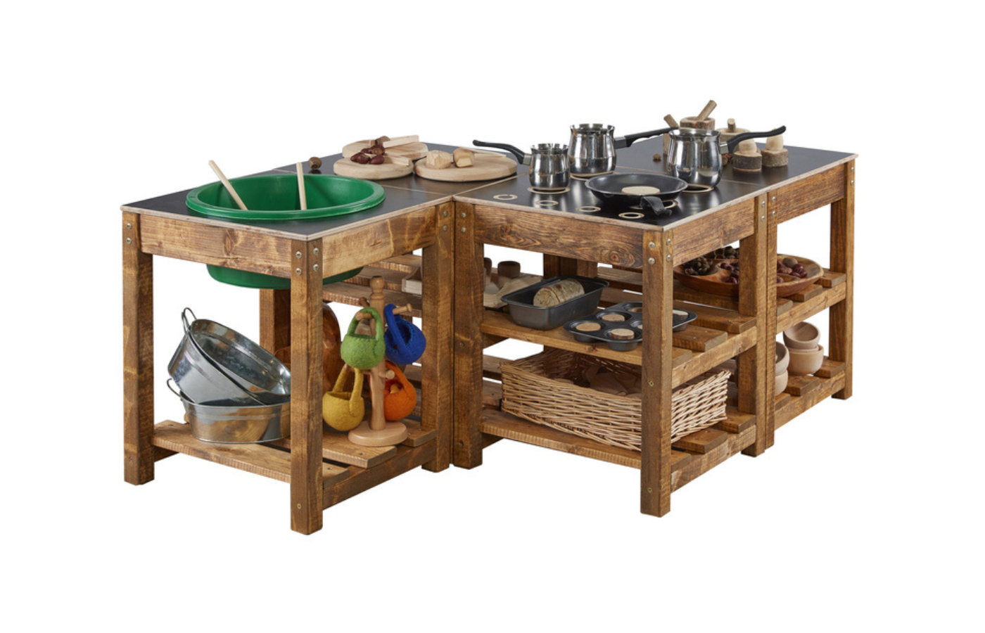 Perfect for toddlers and preschoolers, this set of four kitchen units encourages imaginative play and transforms any corner of your classroom or outdoor space into a bustling kitchen.
