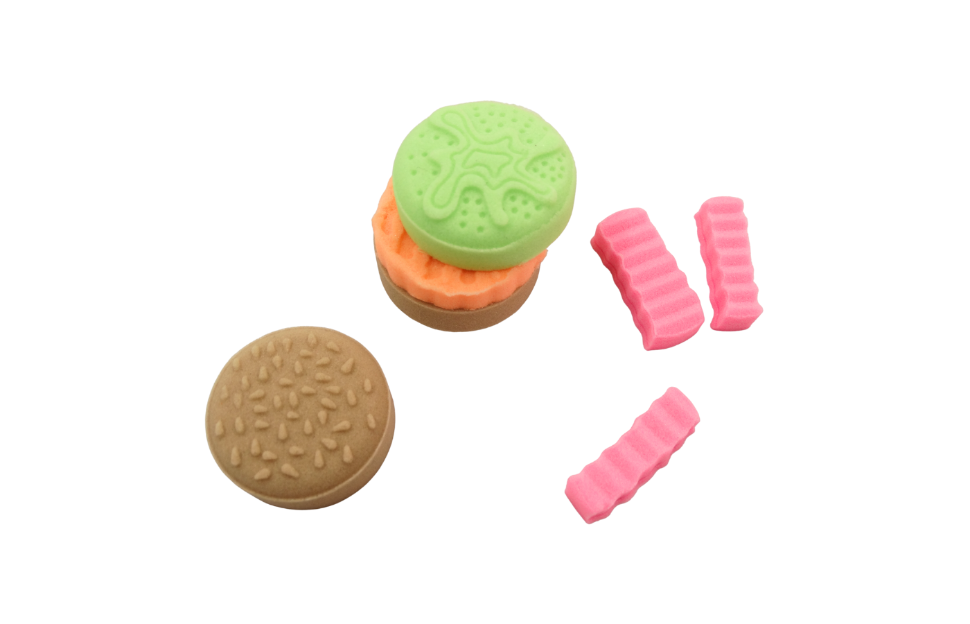 Met de 4 verschillende stempels kunnen kinderen hun eigen hamburger samenstellen.