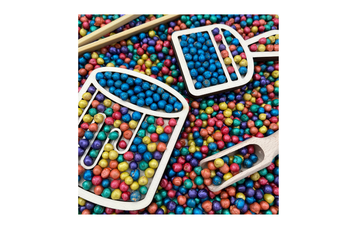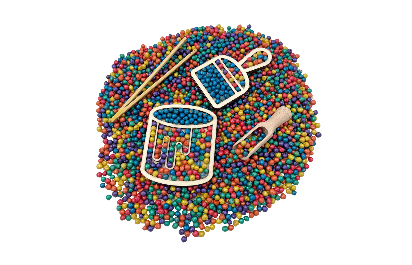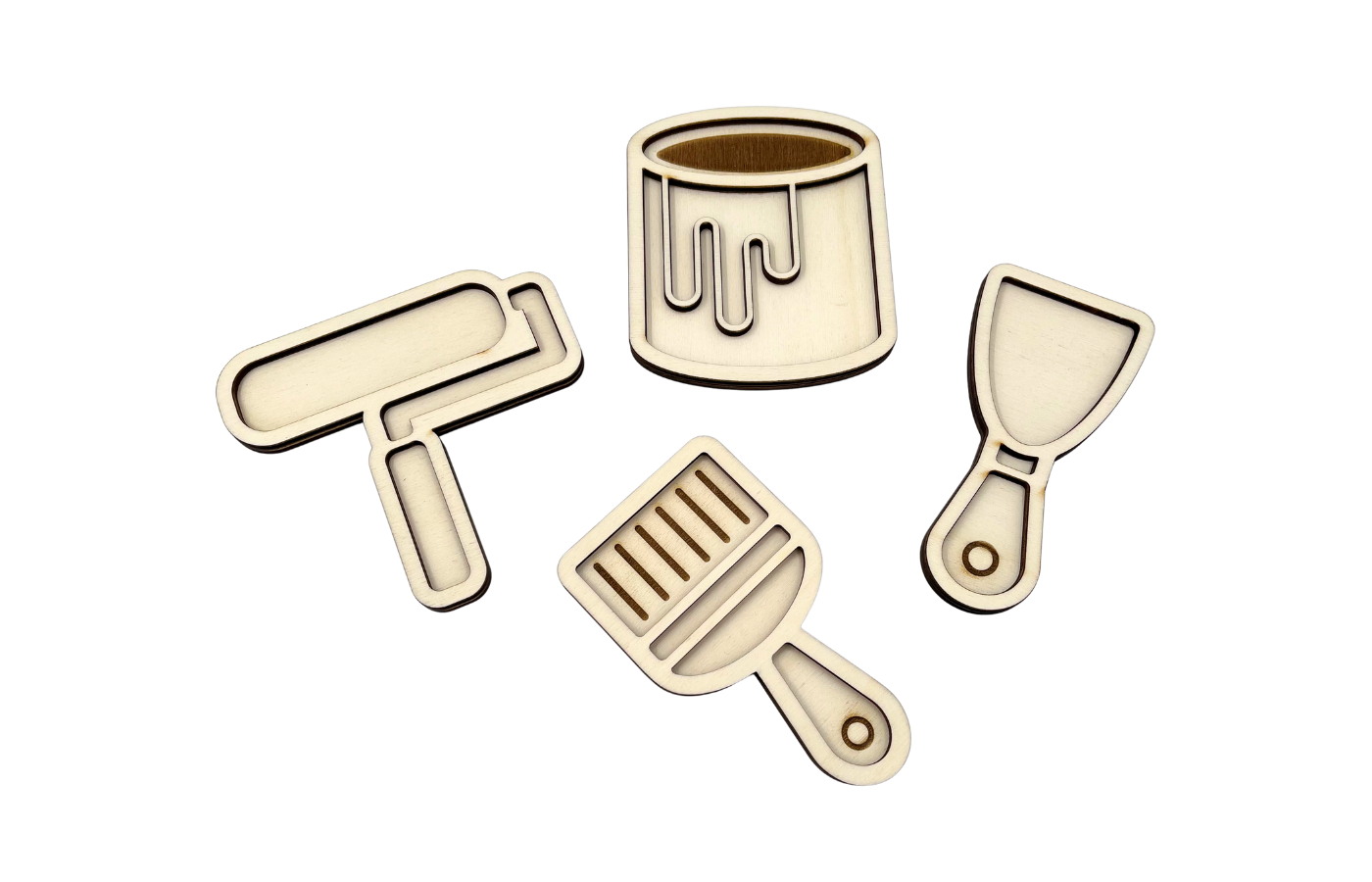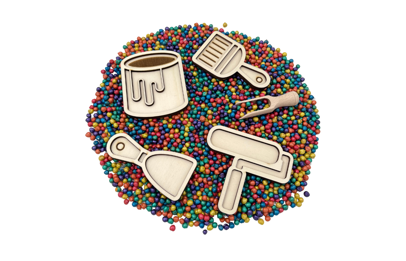 Filling molds or play trays based on the professions - painter. A paint pot, a brush, a putty knife, and a paint roller. Perfect for filling with dry materials like play rice, chickpeas, fine sand, etc. In a cute size.