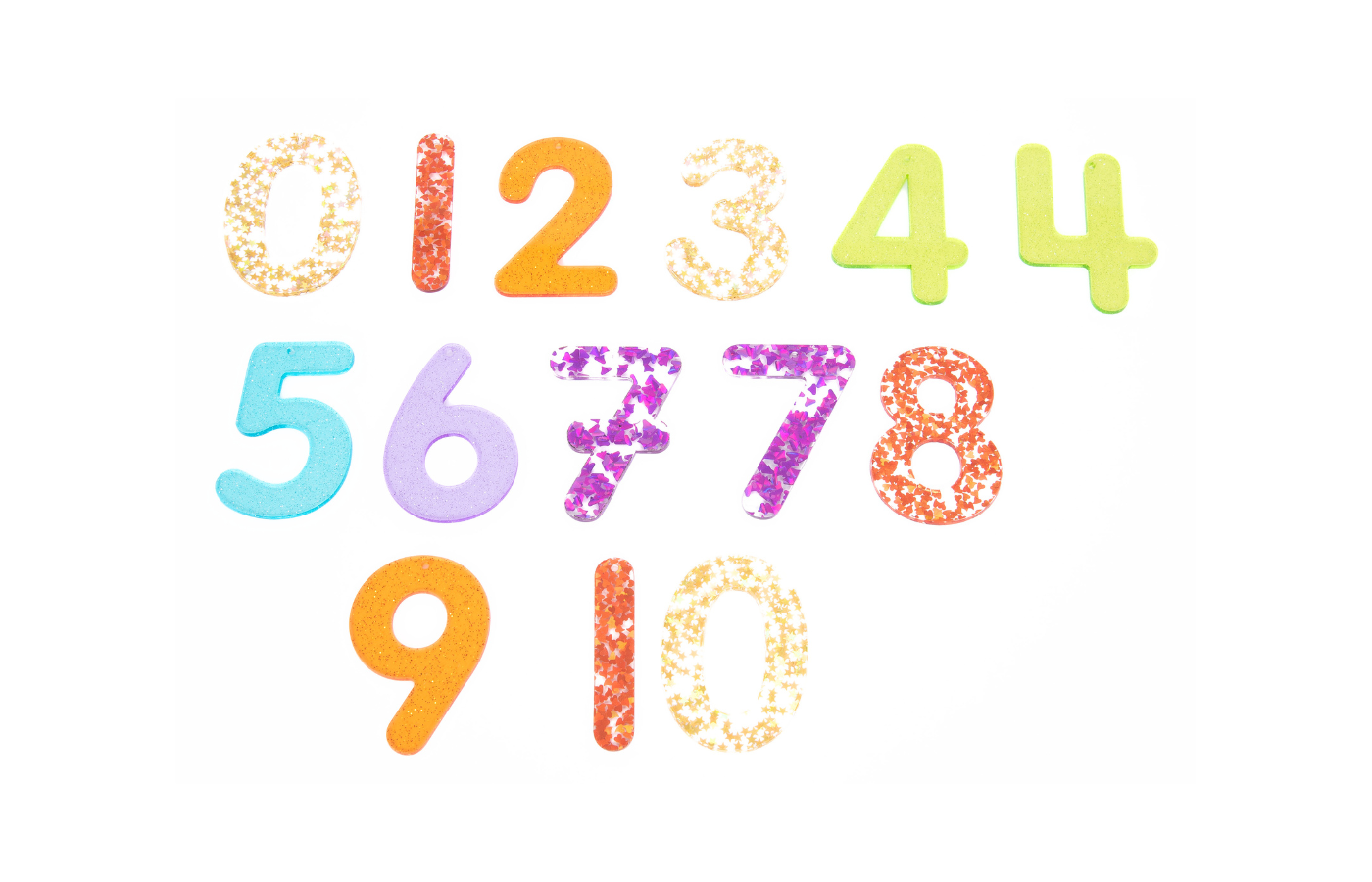 ensemble de 14 pièces chiffres en paillettes arc-en-ciel (dim. 7,5 x 5 x 0,4 cm)