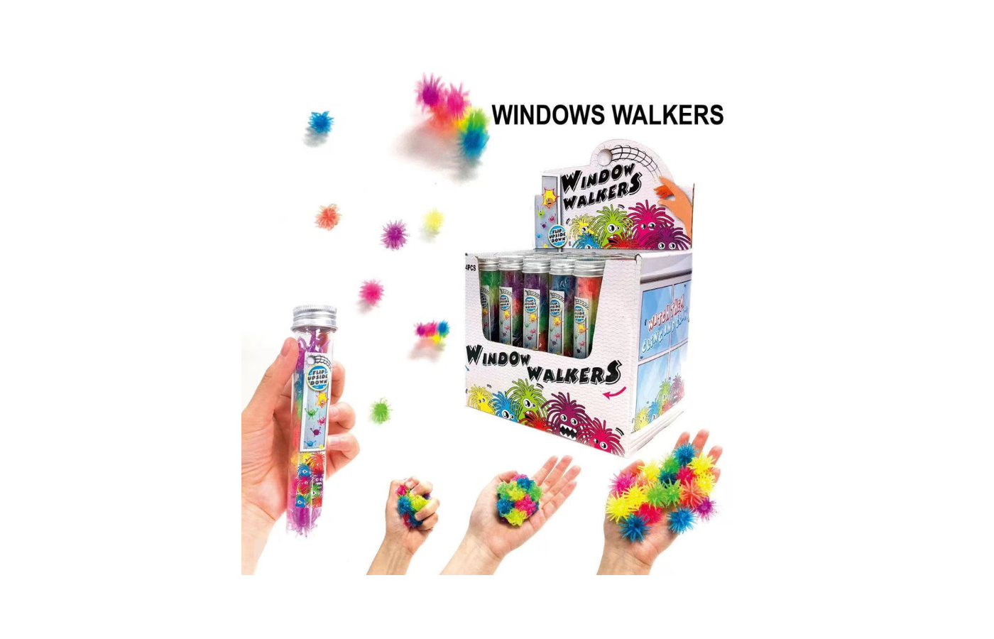 Ces petits rampants collants aux couleurs de l'arc-en-ciel, se collent et grimpent sur les fenêtres et les miroirs. Lancez une course. Lequel est le plus rapide ?