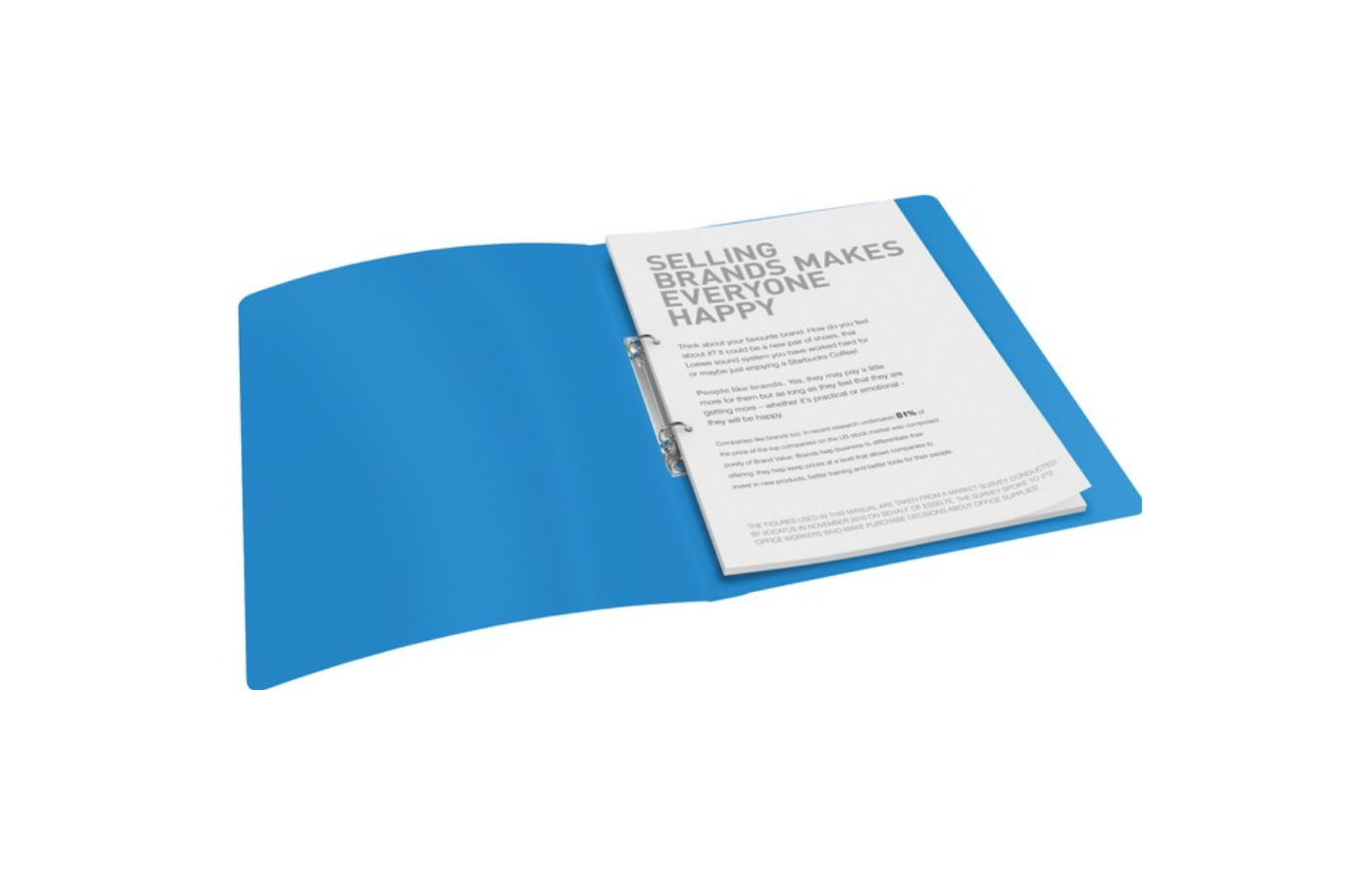 1 anneau de classement - A4 - 2 anneaux - 25 mm - PP (couleur au choix : bleu, rouge, jaune, vert, noir ou blanc)