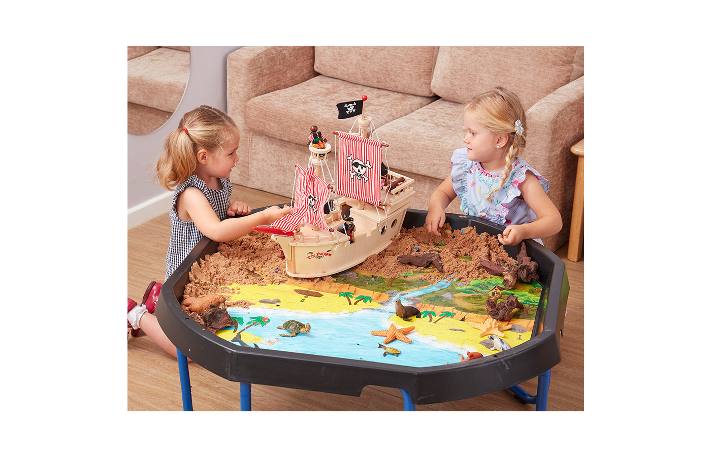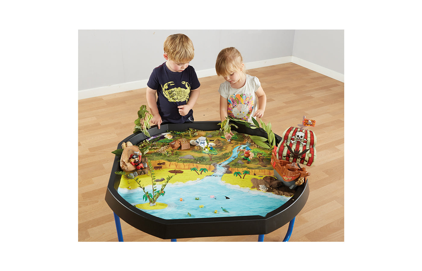 Vivez les aventures les plus passionnantes avec ce tapis de jeu sur le thème de l'île au trésor. À utiliser en combinaison avec la table de découverte (Tuff Tray). Le tapis de jeu peut être utilisé avec des matériaux humides ou secs.