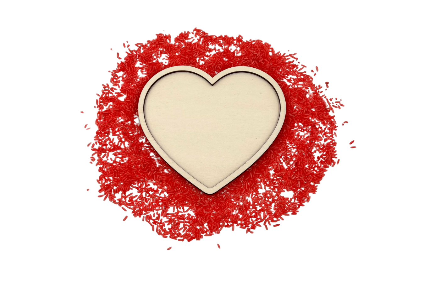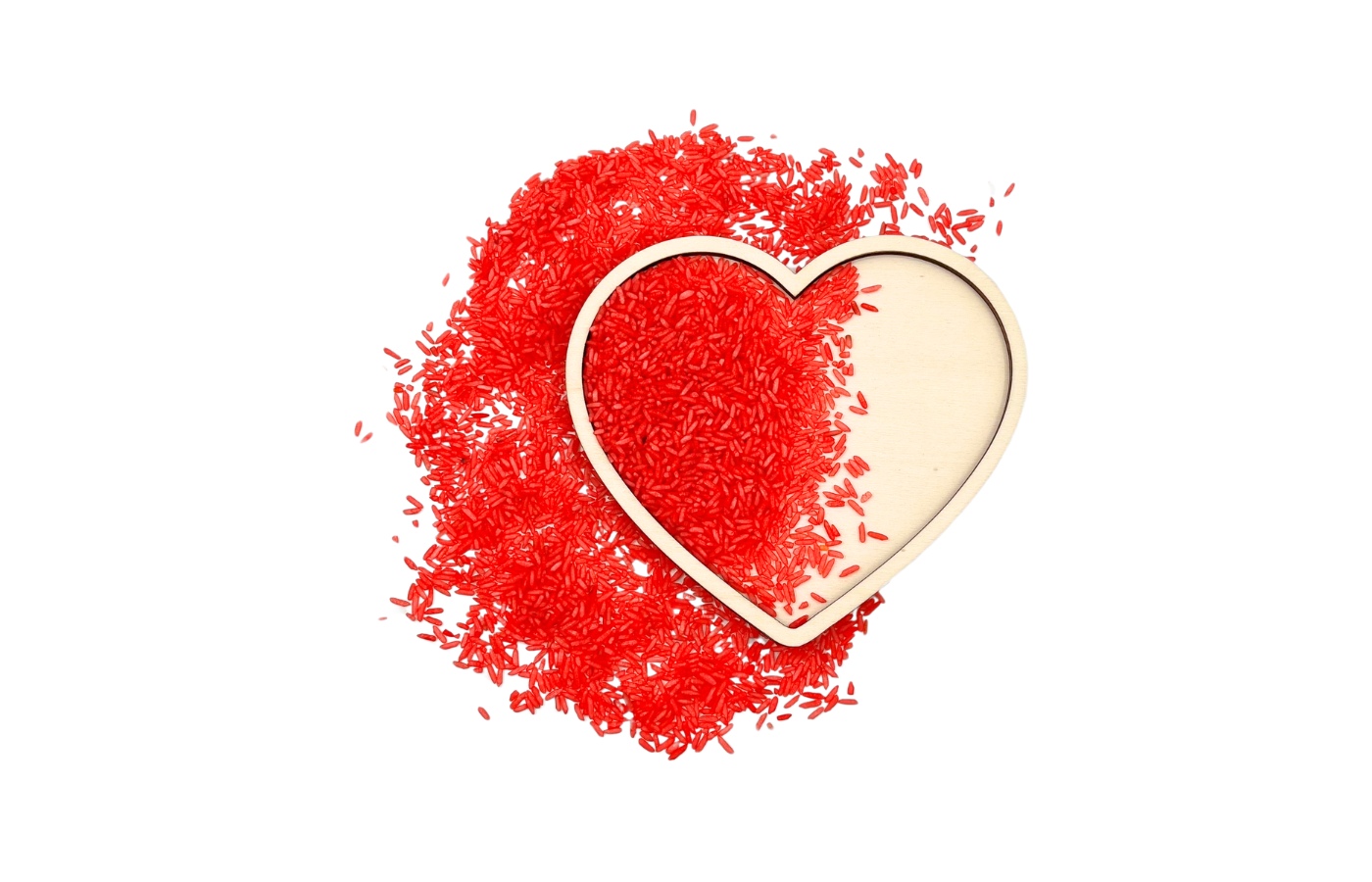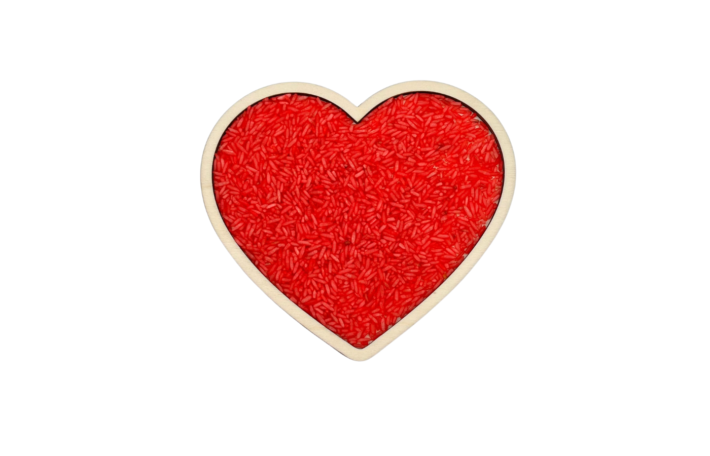 Moule ou plateau de jeu en forme de cœur. Parfait à remplir avec des matériaux secs tels que du riz à jouer, des pois chiches, du sable fin,... et à utiliser dans le thème Saint-Valentin.