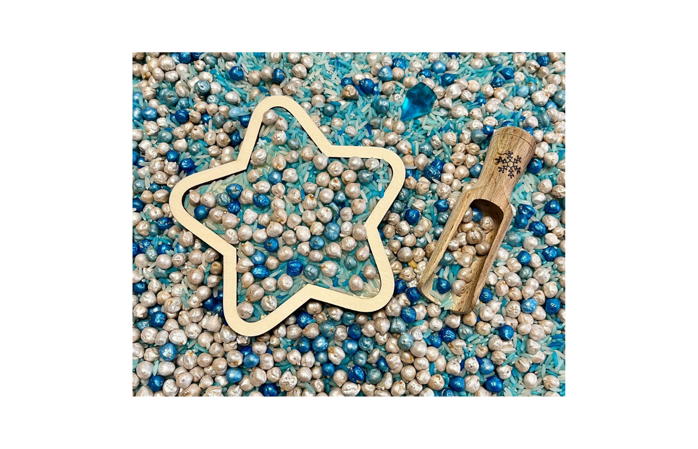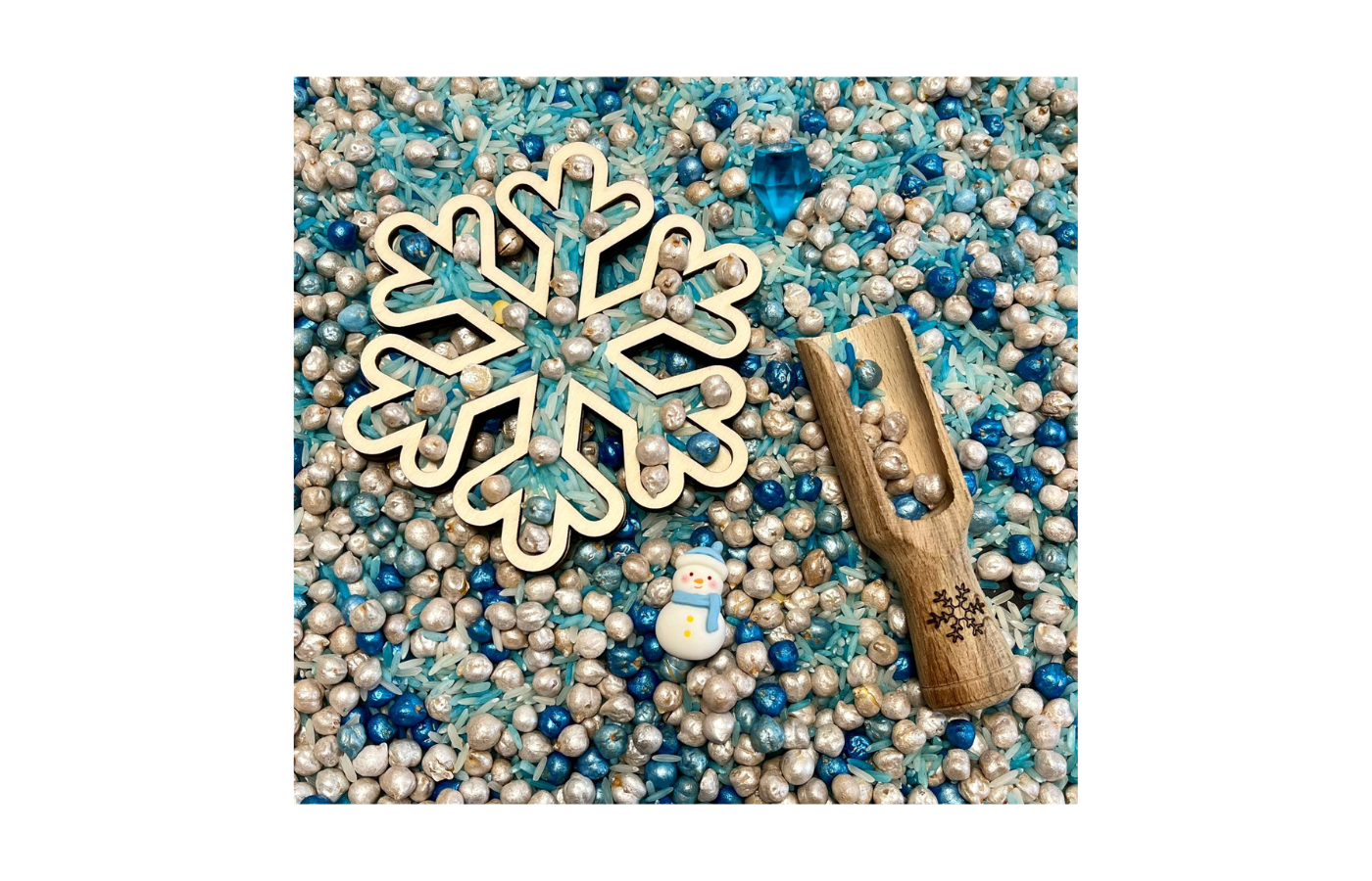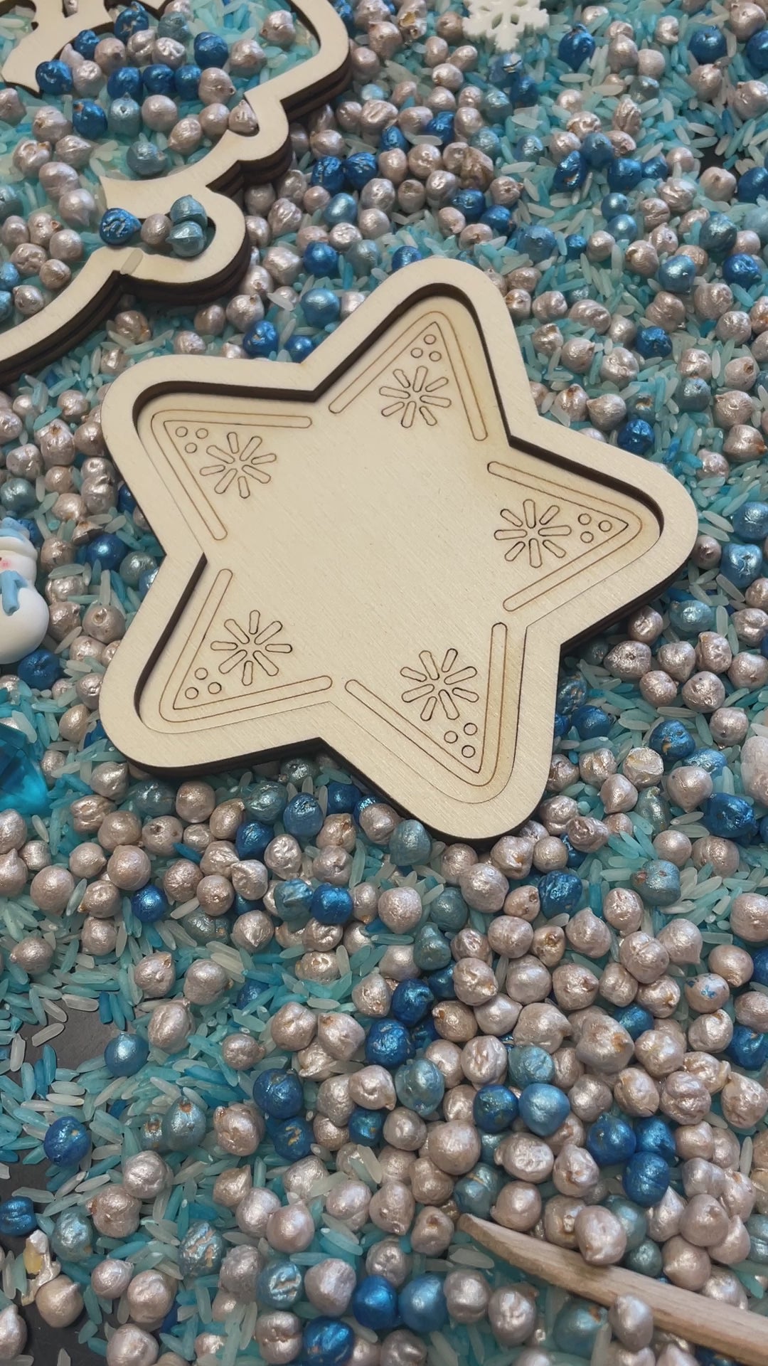 Formes de jeu ou plateaux de jeu sur le thème de l'hiver. Quatre figures différentes sur le thème de l'hiver (bonhomme de neige, flocon de neige, étoile et gant). Parfait à remplir avec des matériaux secs tels que du riz à jouer, des pois chiches, du sable fin,... dans un format amusant.