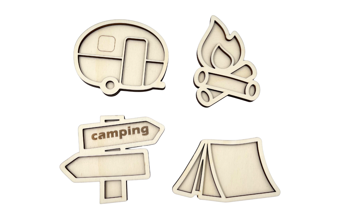 4 formes de remplissage - été - camping (taille du feu de camp 12 x 8 x 0,8 cm)