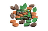 L'ensemble contient 6 pierres en forme de feuilles, 6 morceaux de bois et 6 pommes de pin.