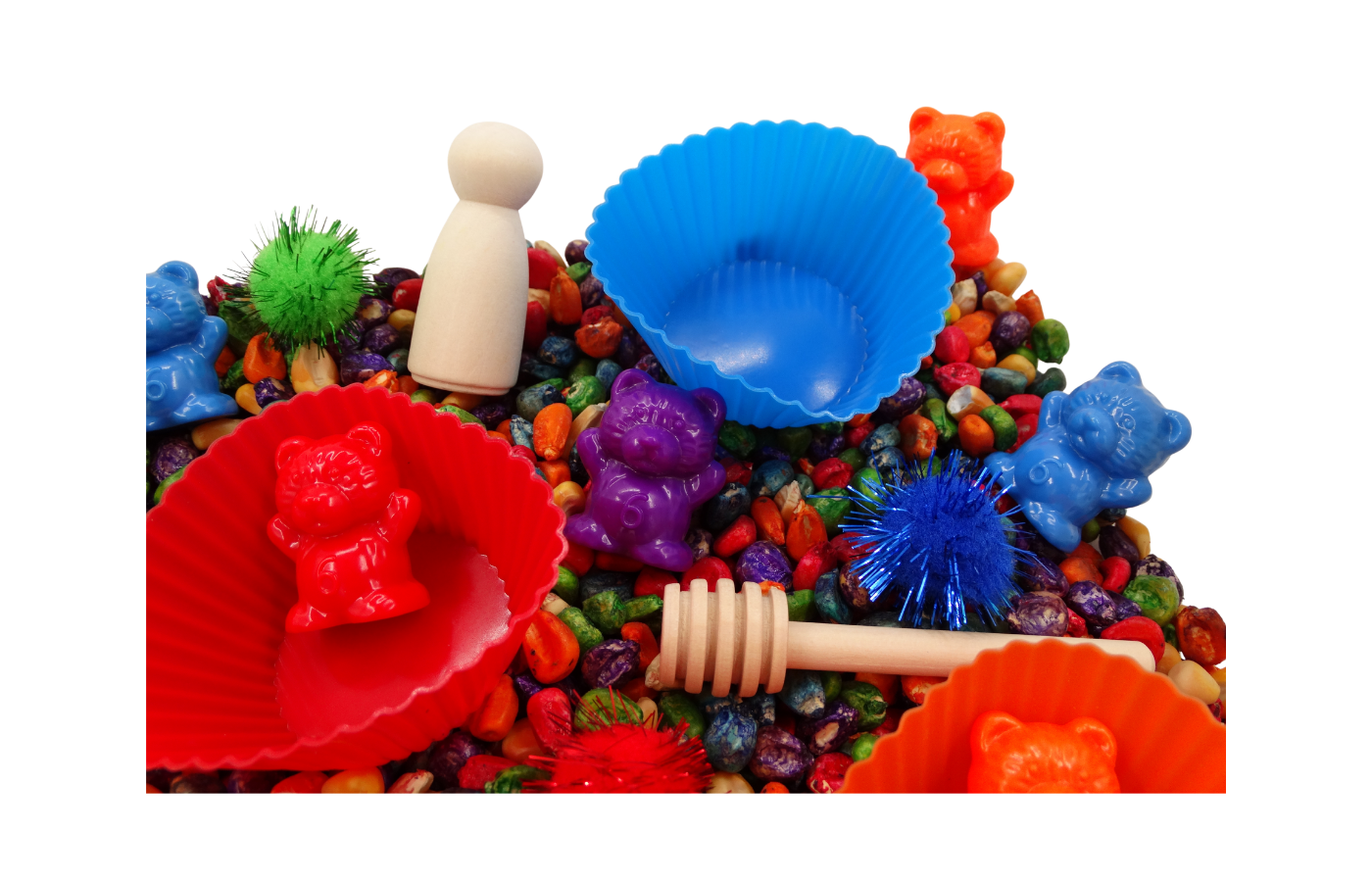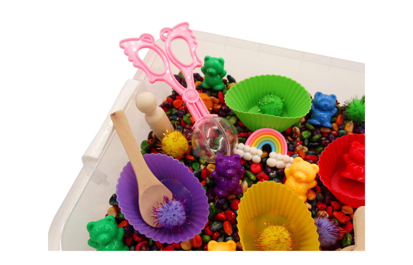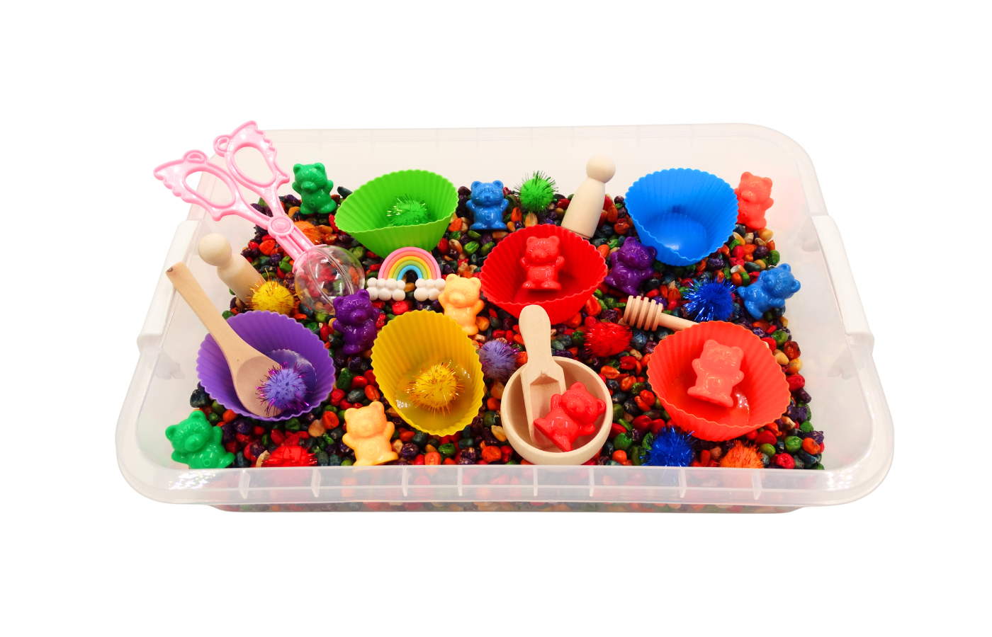 Plateau de jeu sensoriel - arc-en-ciel - pop-corn