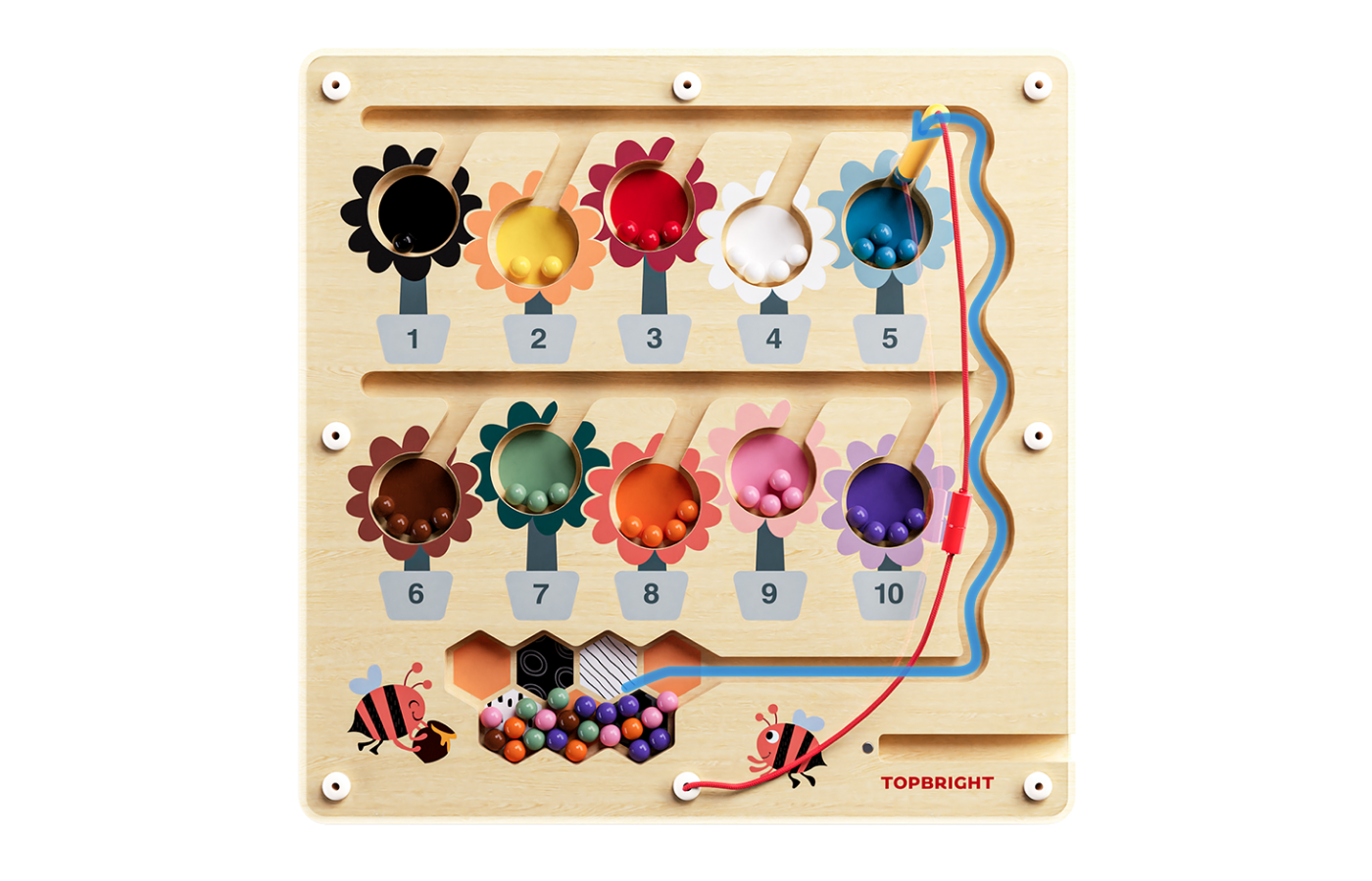 Interactief leerplezier: met 55 kleurrijke magnetische kralen en een speciale magneetpen ontdekken kinderen kleuren en cijfers terwijl ze de kralen door het doolhof bewegen. Dit stimuleert de cognitieve ontwikkeling en houdt jonge geesten actief.